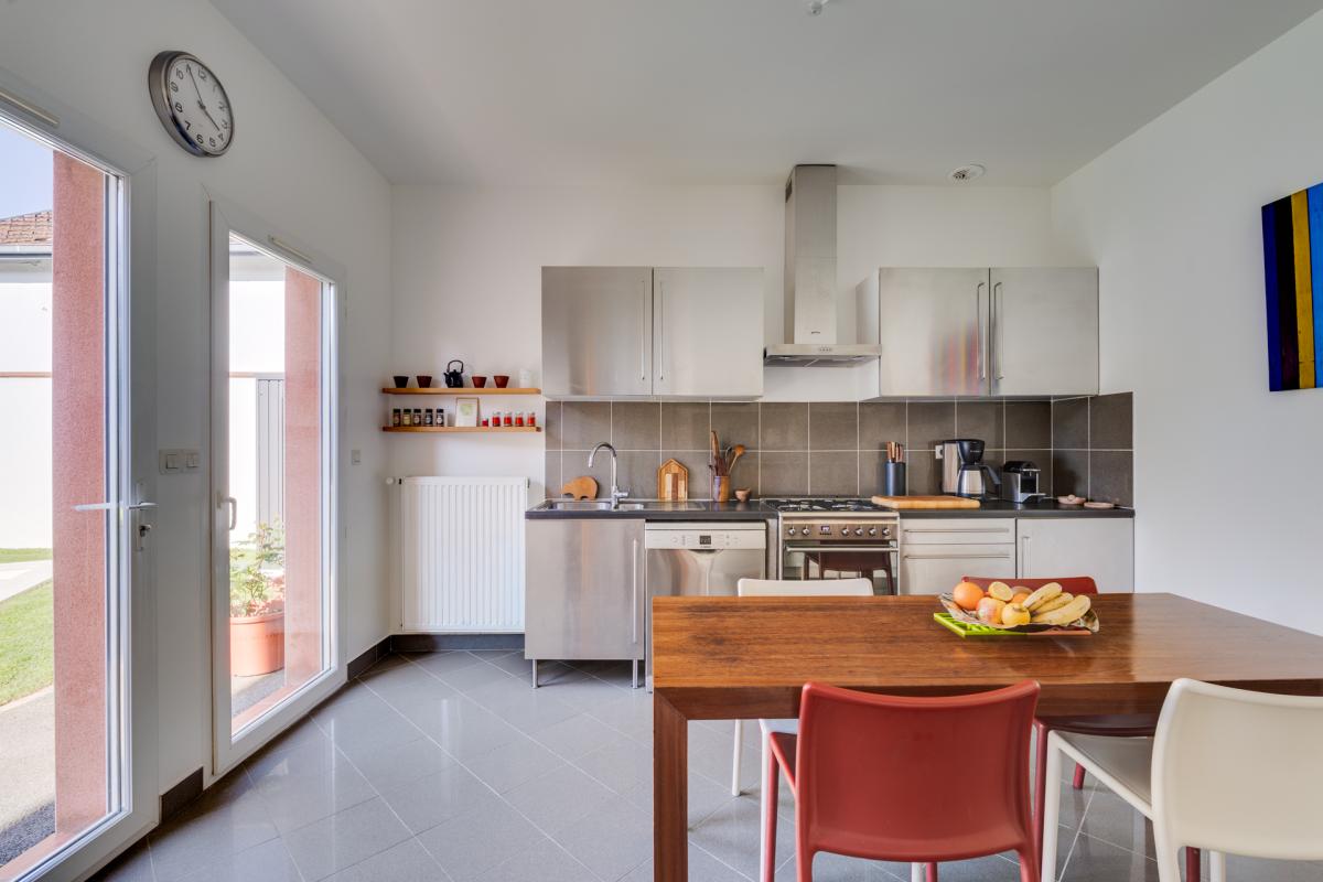 La cuisine indépendante entièrement équipée s'accompagne d'une buanderie fonctionnelle.