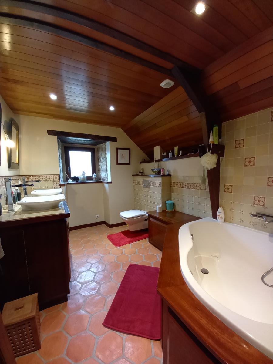 Au calme, posée sur un parc paysagé de 3900m², cette bâtisse en pierre rénovée avec soin, vous offre le charme de l'ancien tout en vous assurant le confort d'une rénovation de qualité. le rez-de-chaussée vous propose une entrée, un salon-séjour avec cheminée, une cuisine avec un espace repas, un bureau et cellier. Le 1er étage dessert deux chambres, une grande suite parentale avec une partie atelier.