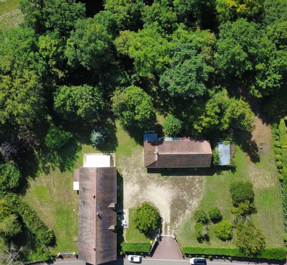 Jardin pour partie boisée de 6.483 m², avec un puits, préau et bûcher.