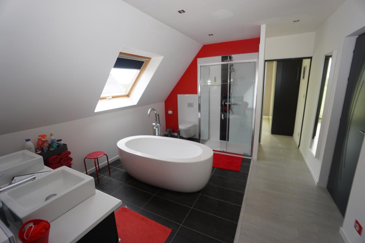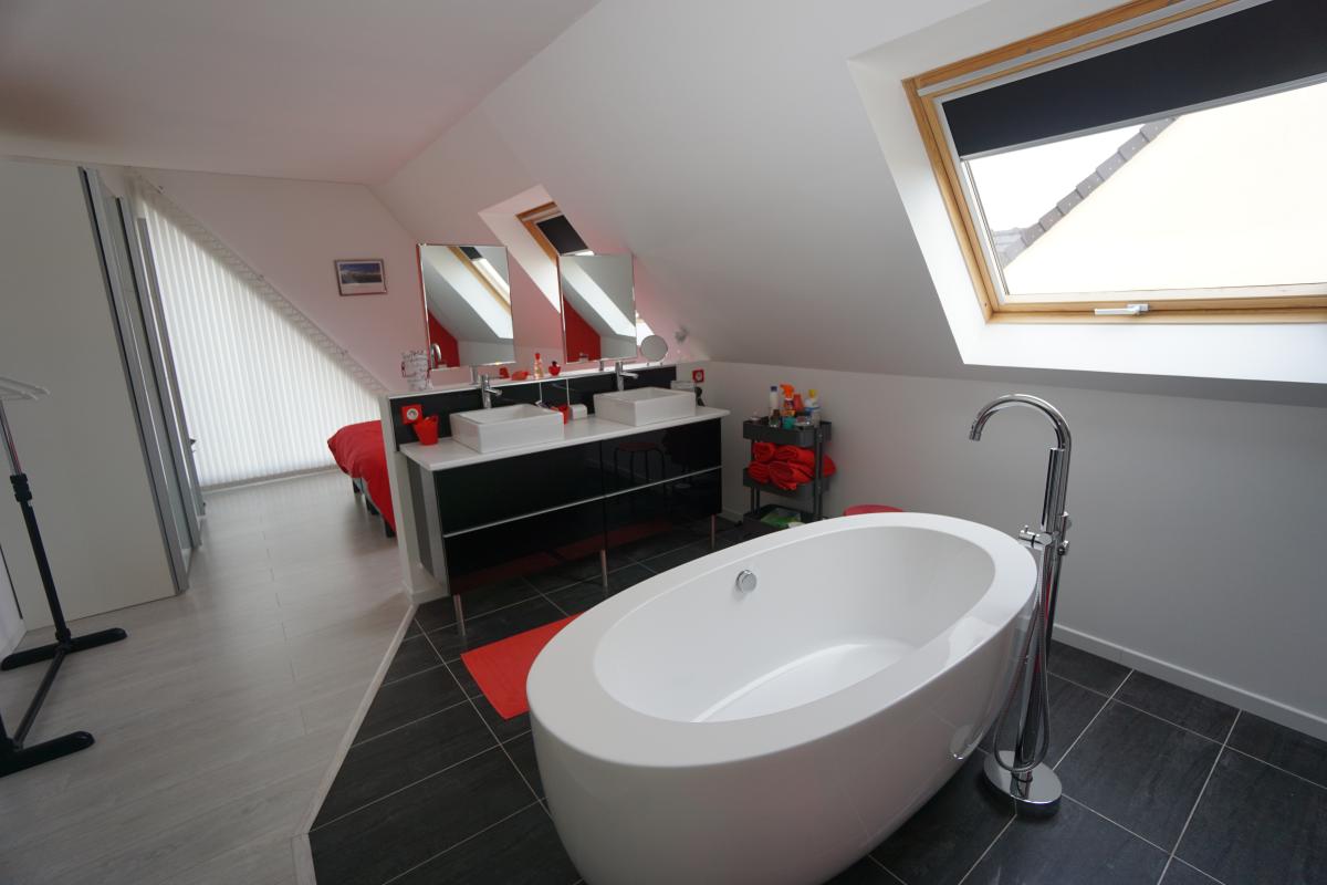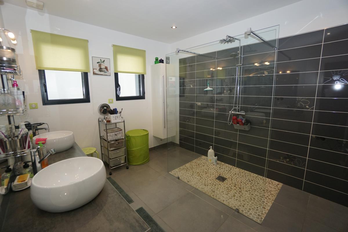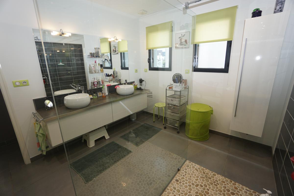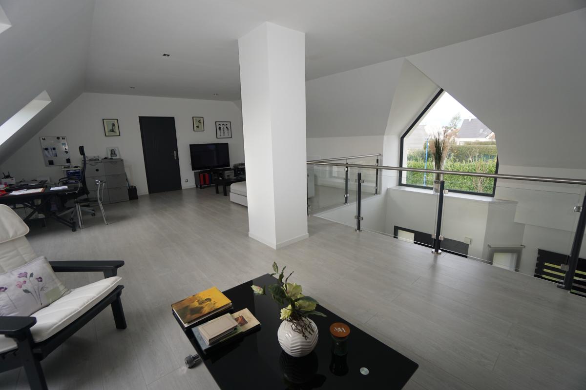 À l’étage, un vaste palier d’environ 42 m² , un dressing, une grande suite parentale avec salle de bain ouverte.
