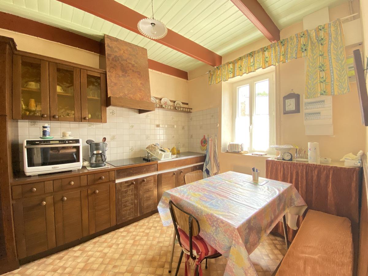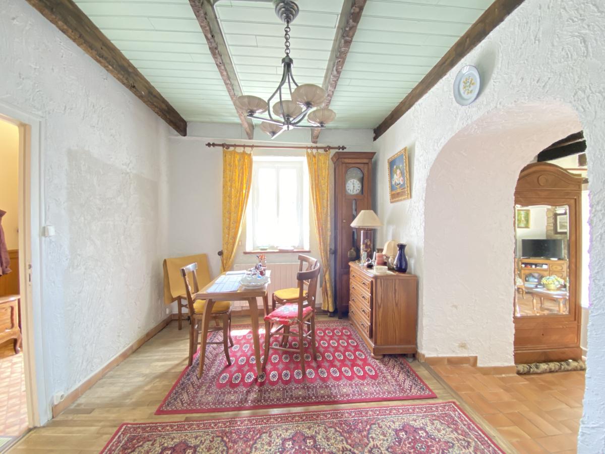 - Rez-de-chaussée : entrée, WC, une cuisine, salle de douches, salle à manger et salon avec poêle à bois.