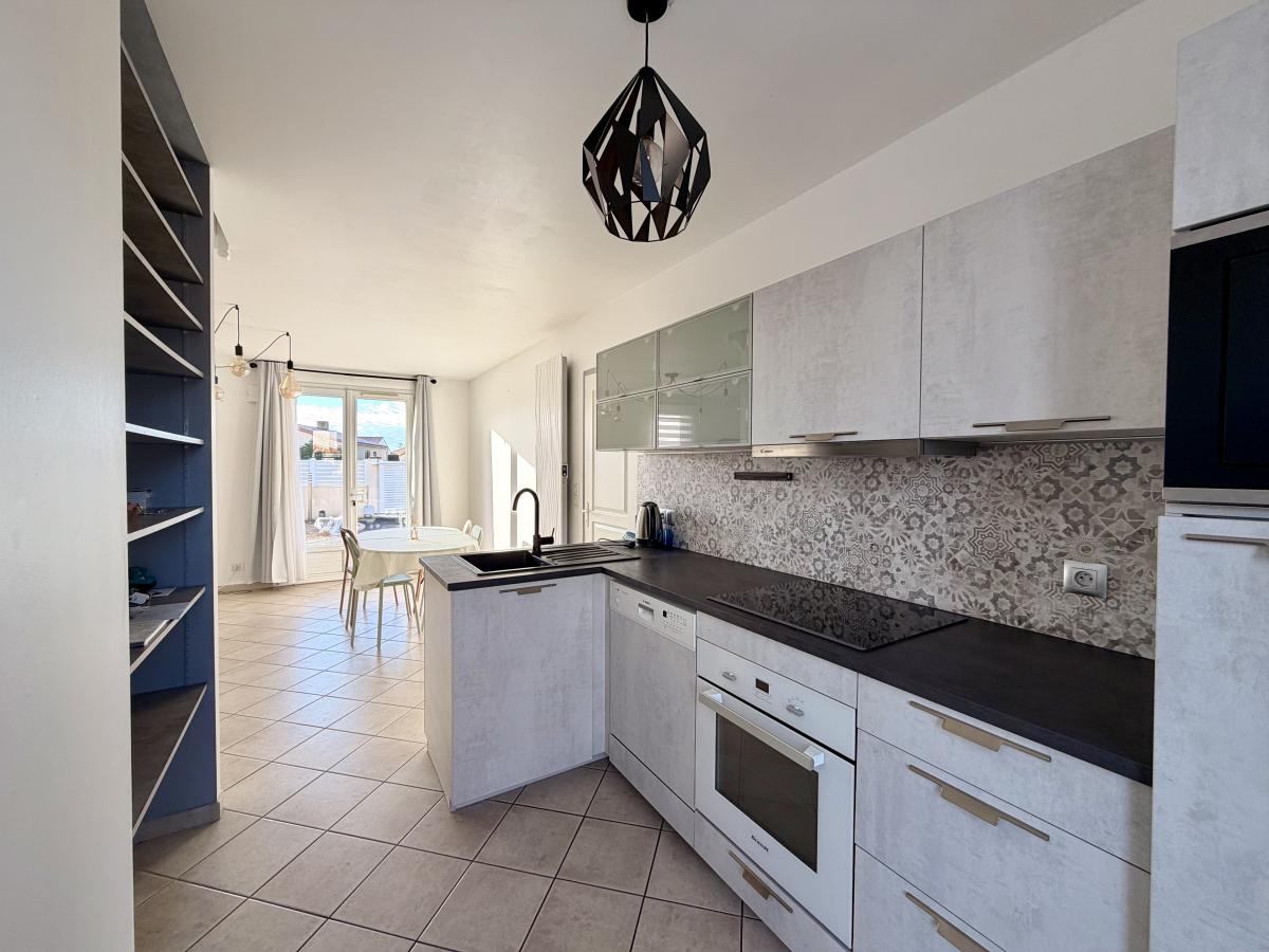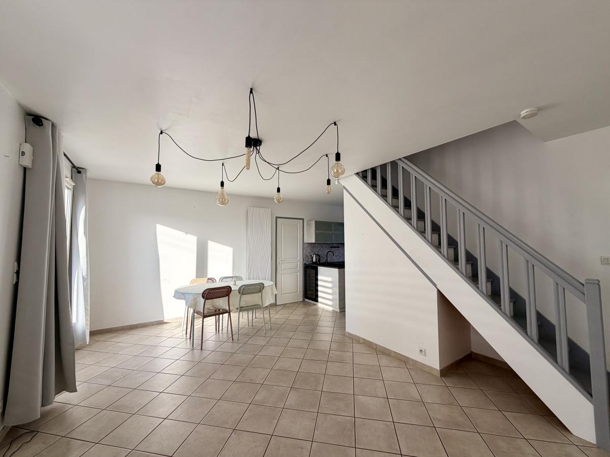 Au rez-de-chaussée : une entrée directement sur la pièce de vie (salon/salle à manger), une cuisine équipée/aménagée ouverte, un W.C séparé, une chambre avec placard et une salle d'eau.