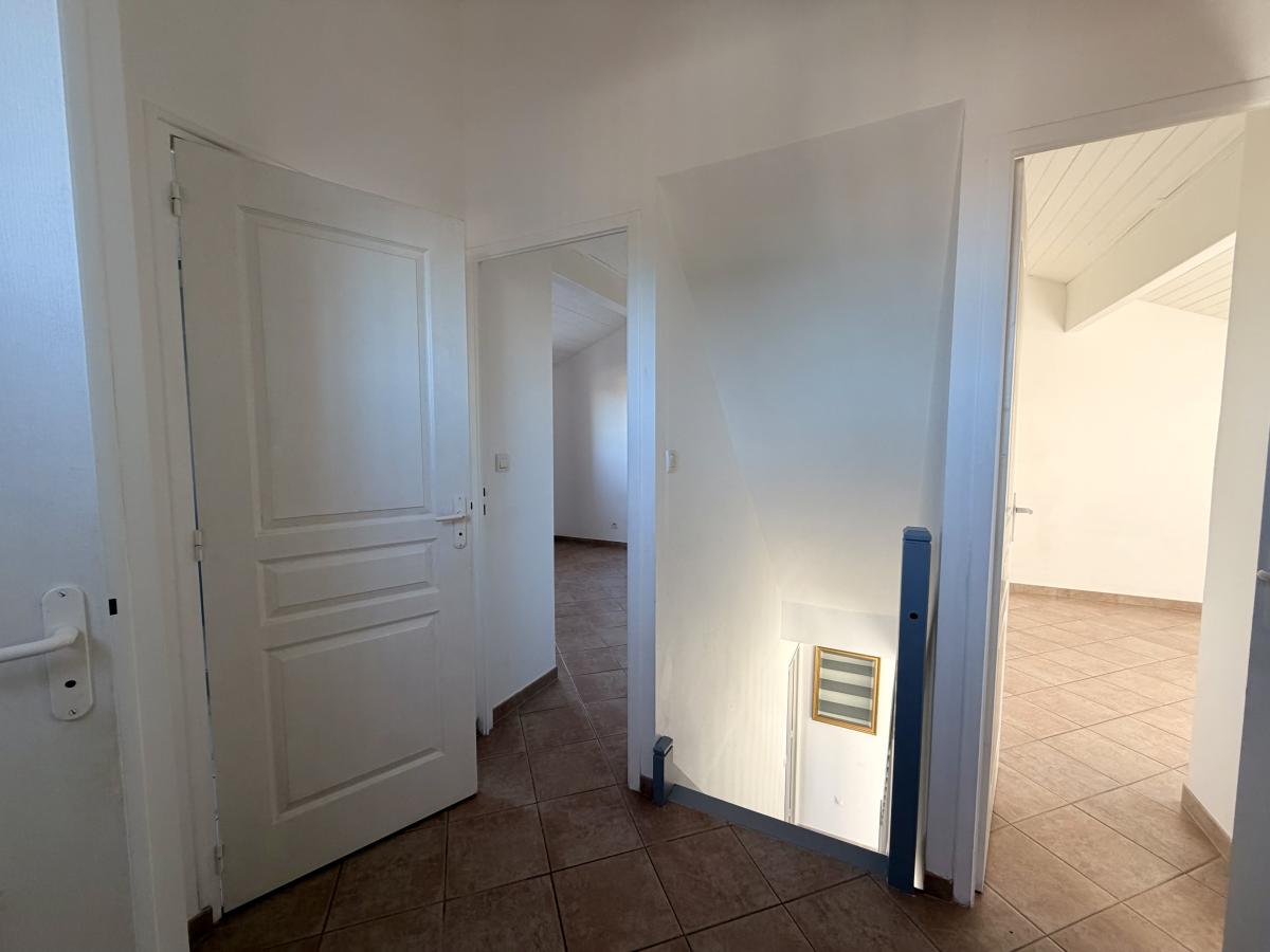 A l'étage : un palier, deux chambres avec placard, un bureau avec placard, une salle d'eau avec placard et un W.C séparé.