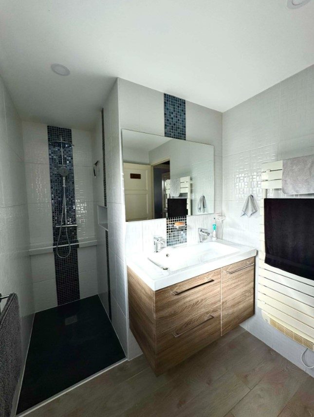- A l'étage : une salle d'eau avec W.C., deux chambres, un bureau.