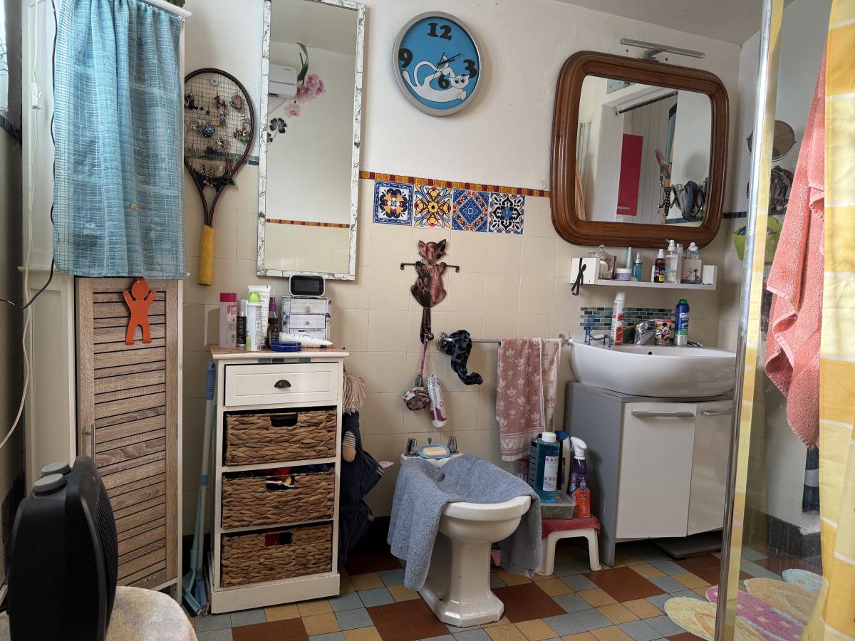 - A l'étage : entrée, cuisine, salon, deux chambres, salle de douches avec WC,