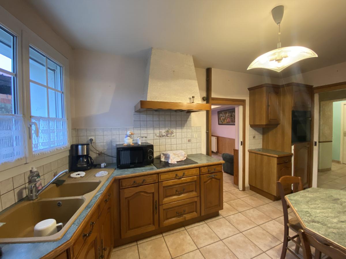 Une maison d'habitation comprenant un salon-séjour avec cheminée, une cuisine indépendante aménagée et équipée, trois chambres, une salle d'eau avec wc, chaufferie et dégagements en rez-de-chaussée.