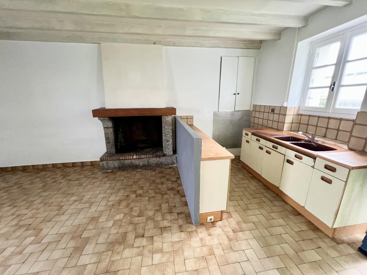 Elle comprenant au rez-de-chaussée, salon avec cheminée et cuisine, ouverte (25m²), une chambre (14m²), un wc, une salle de bain et une buanderie.
