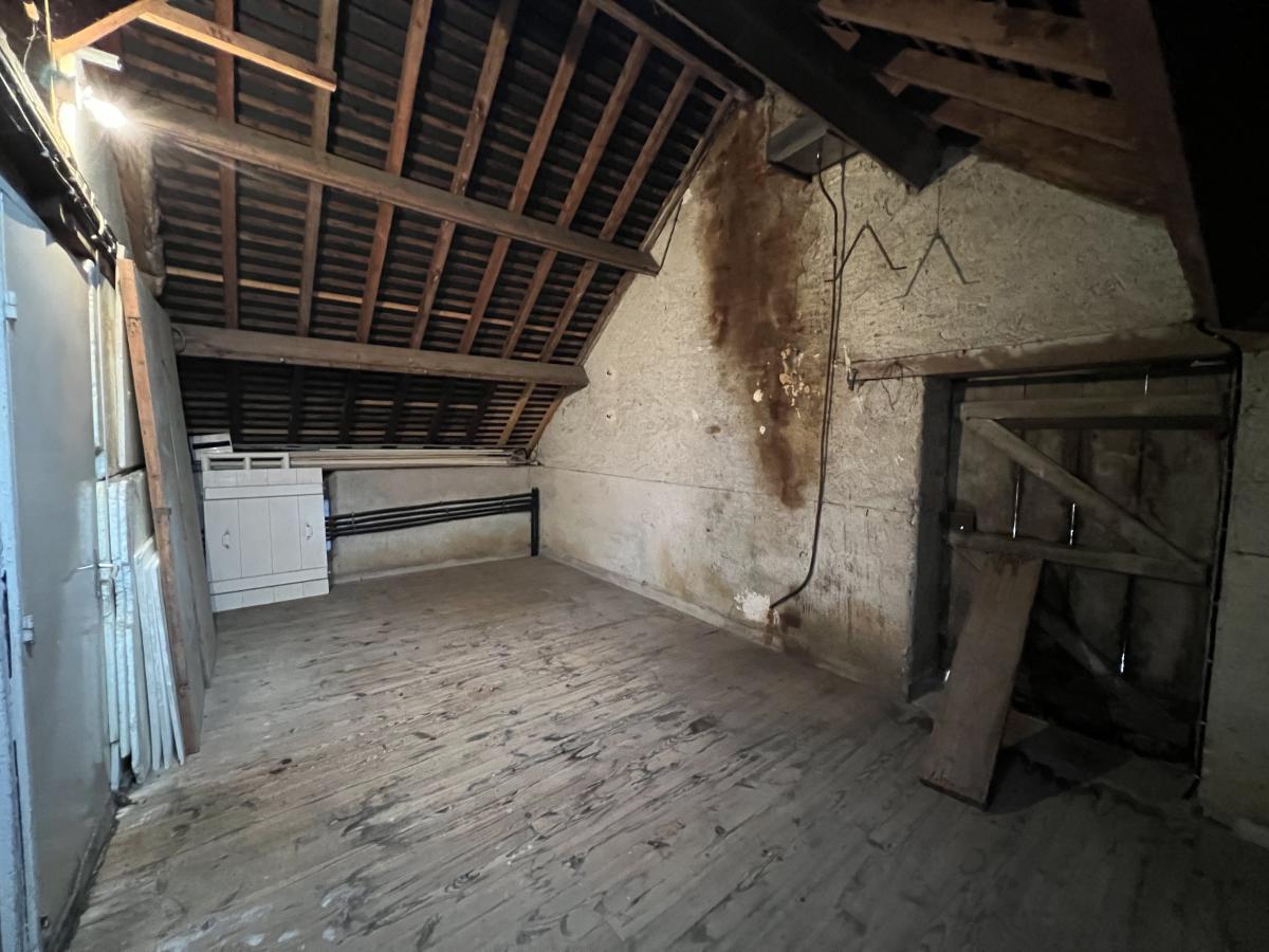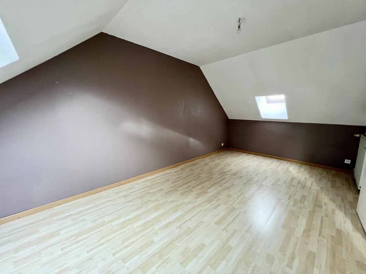 A l’étage, un palier dessert une chambre (12m² et 17m² au sol), un bureau (5m² et 8m² au sol), un dressing et un grenier qui peut être aménagé en chambre (13m² et 18,5m² au sol).