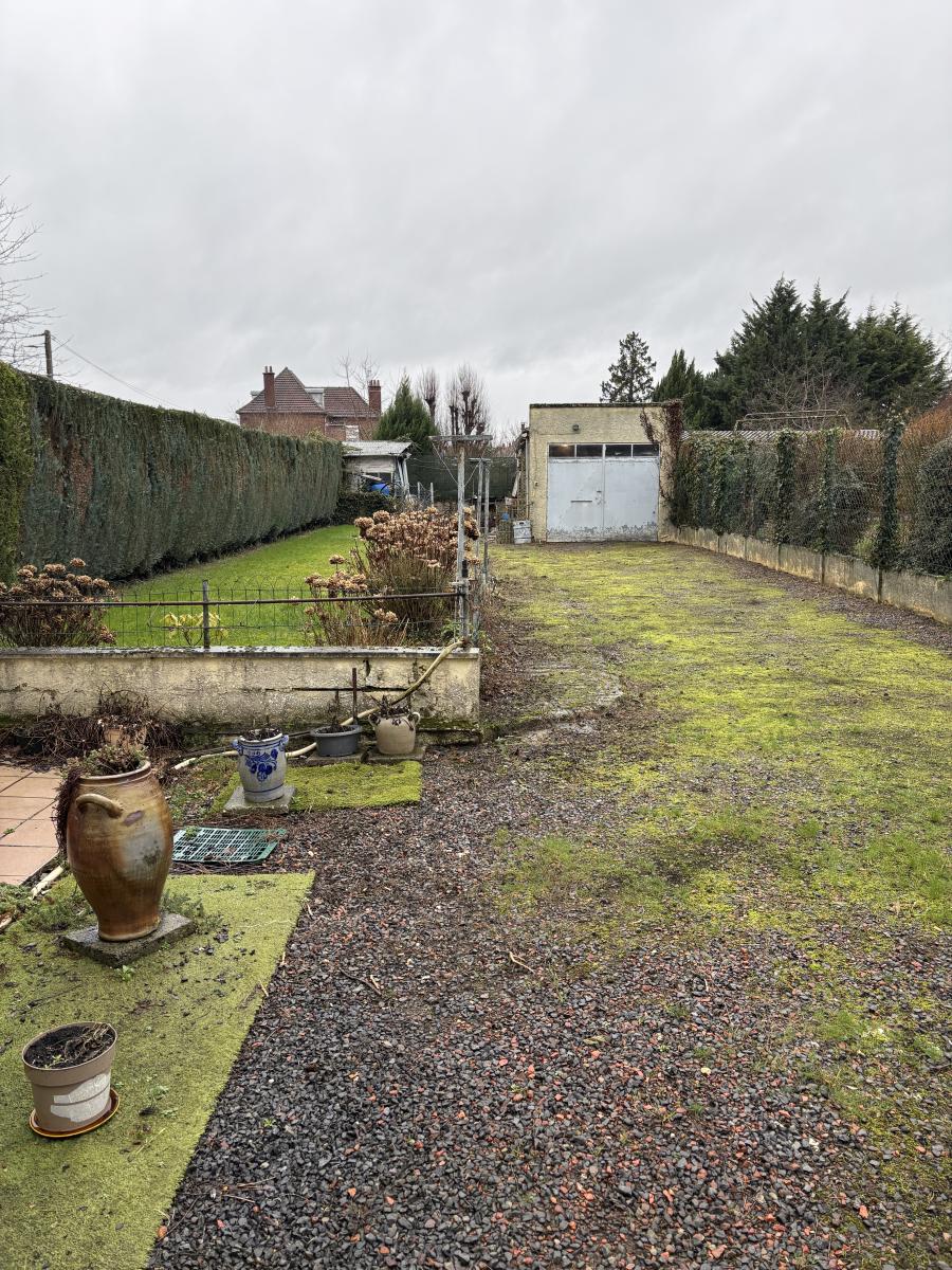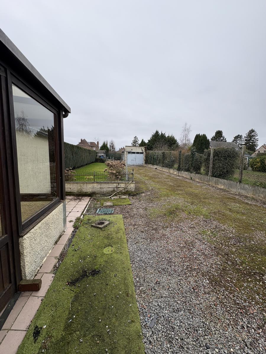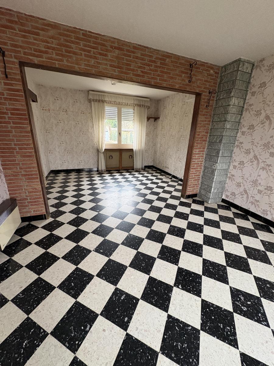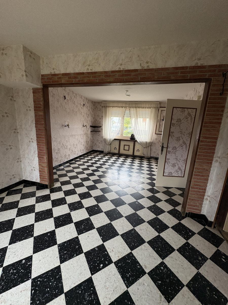 Agréable maison, Semi mitoyenne, disposant au rez-de-chaussée d’un couloir d’entrée, d’un WC, d’un salon, d’une salle à manger, d’une cuisine rustique aménagée et d’une véranda donnant sur le jardin. Quant à l’étage, il comprend un palier, trois chambres, une salle de bain et grenier.