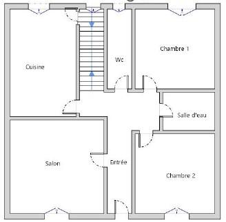 Entrée, cuisine, pièce de vie, 2 chambres, salle de bains, WC.