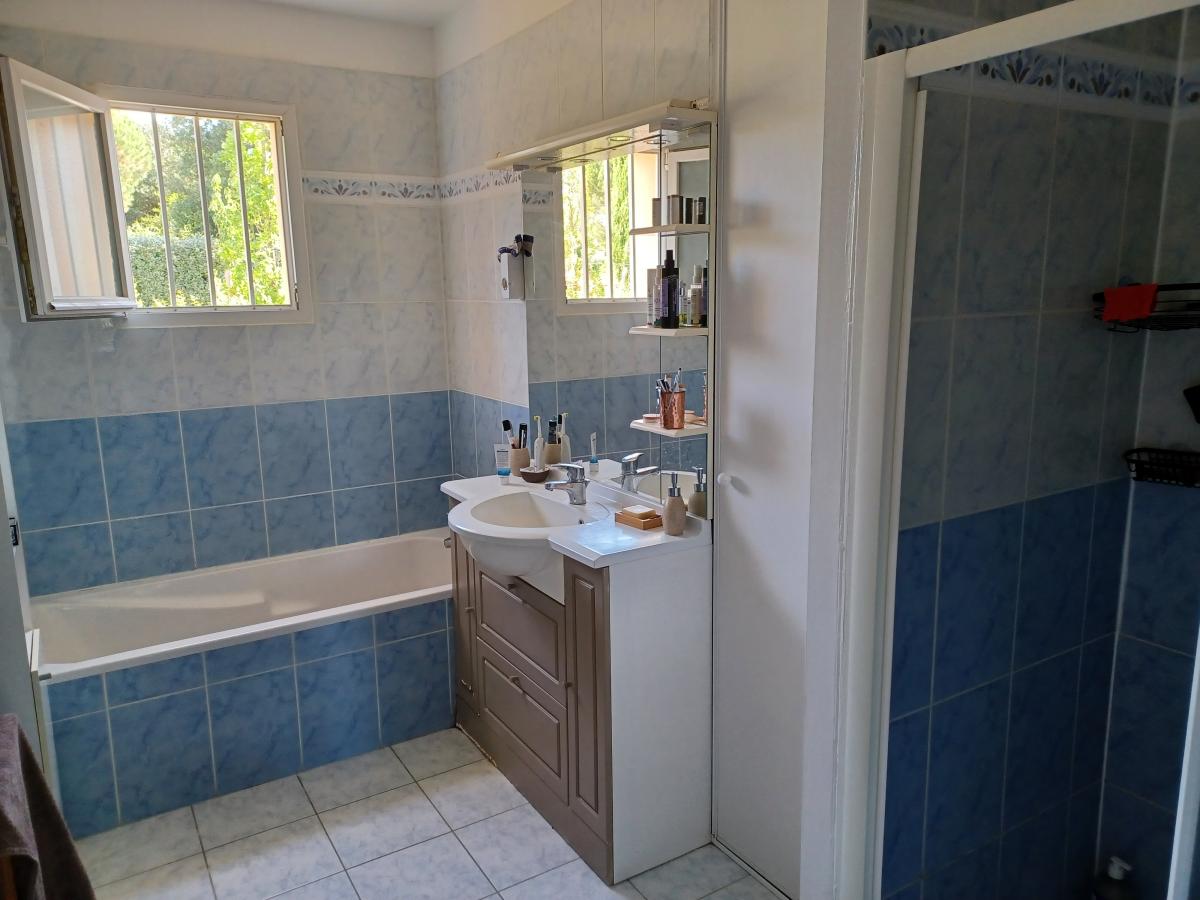 A pied de toutes les commodités: école, collège, sports, loisirs et commerces, maison de plain-pied de 81m² habitables avec terrain de 504m² comprenant une pièce de vie traversante et lumineuse, une cuisine ouverte aménagée et équipée, trois chambres, une salle de bains (baignoire et douche), une lingerie et un garage avec faux-grenier. Jardin clôturé à l'arrière avec une terrasse exposée Sud-Ouest. Chauffage électrique et ouvertures PVC/DV. Maison raccordée à la fibre, peintures récentes.