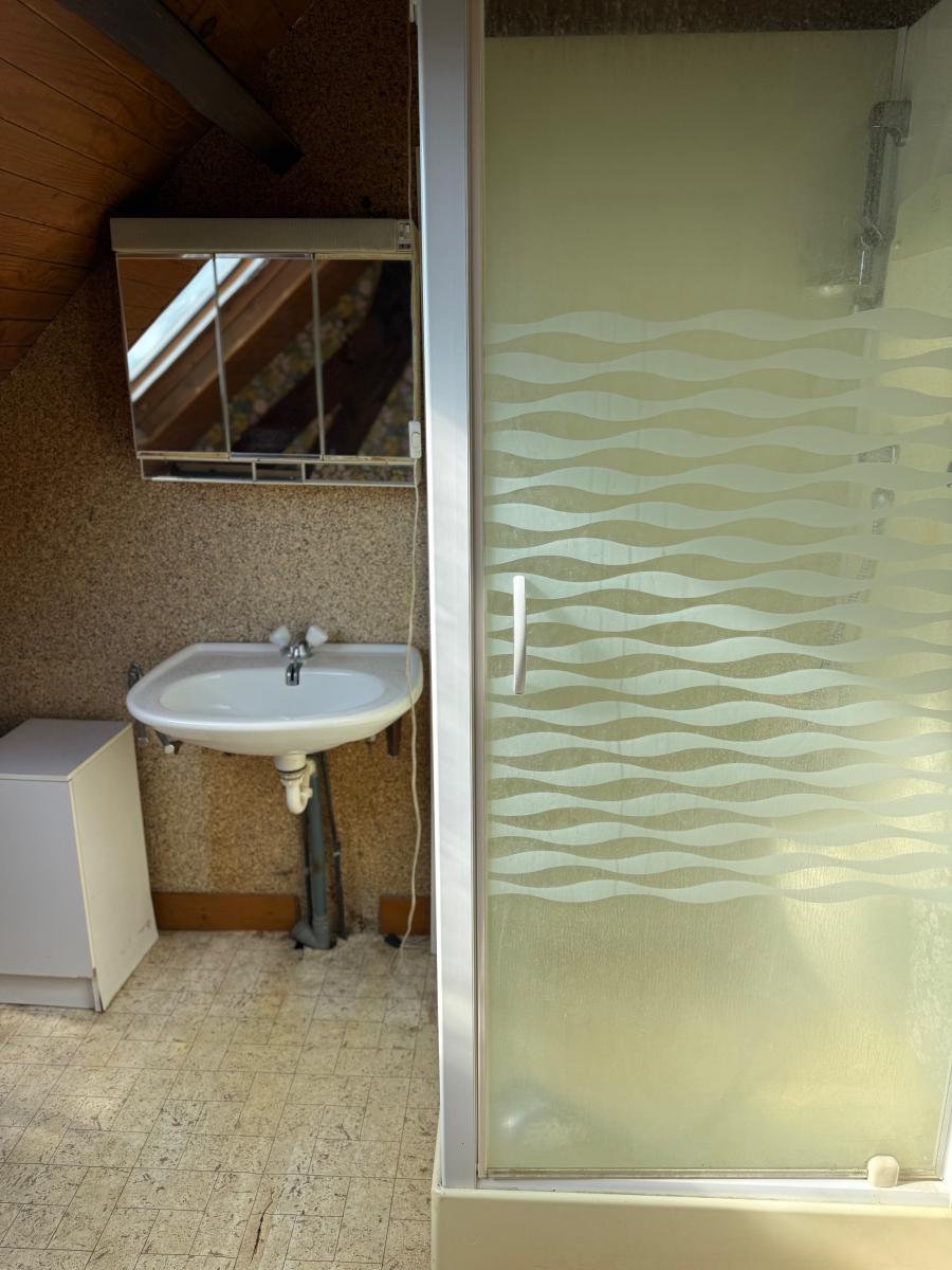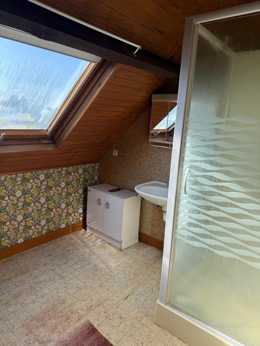 A l'étage : palier desservant une chambre, salle d'eau et grenier.