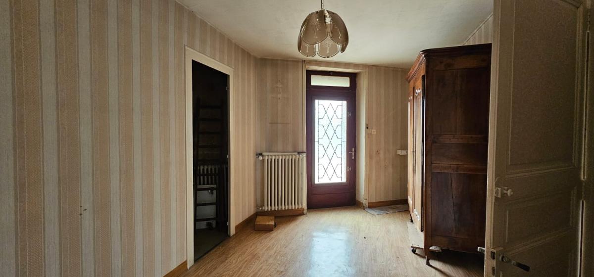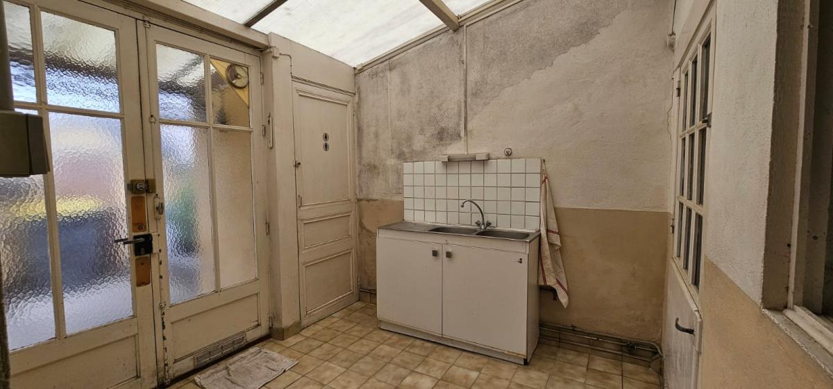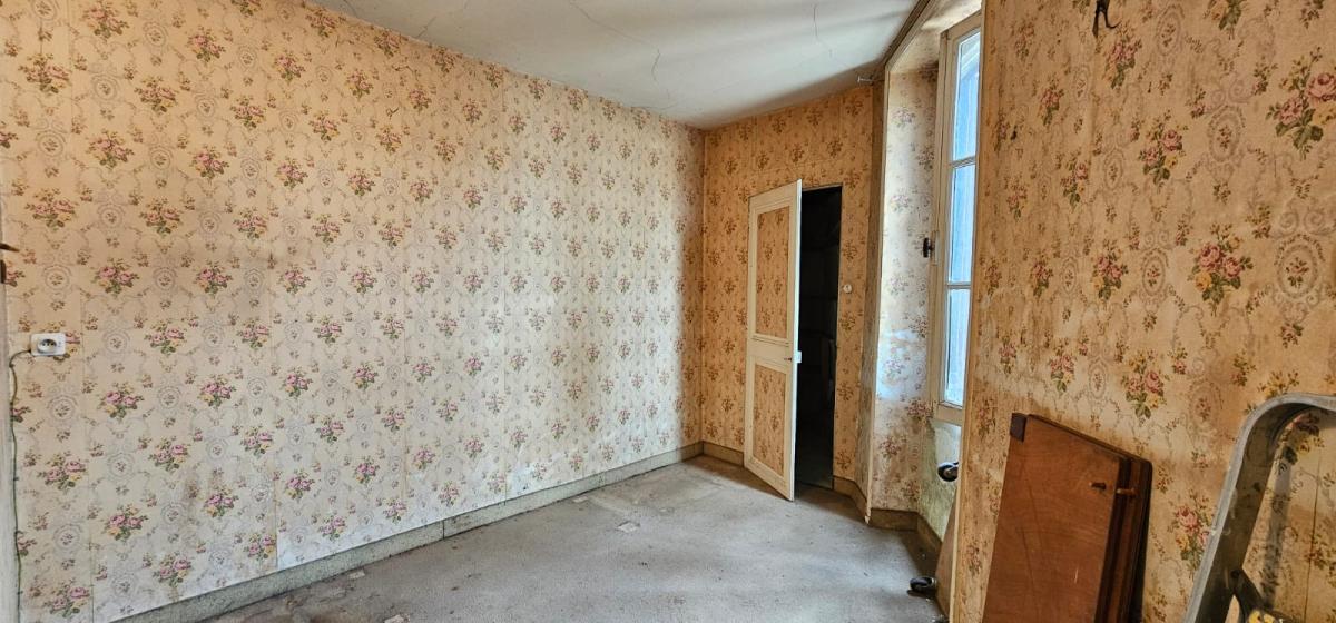 Maison au cœur du bourg à rénover entièrement, proche de la gare et des commerces, idéale investisseur et comprenant : Entrée, salon-séjour, cuisine, une grande chambre, salle d'eau avec toilettes et coin machine à laver, dégagement. A l'étage deux chambres et potentiel au grenier.