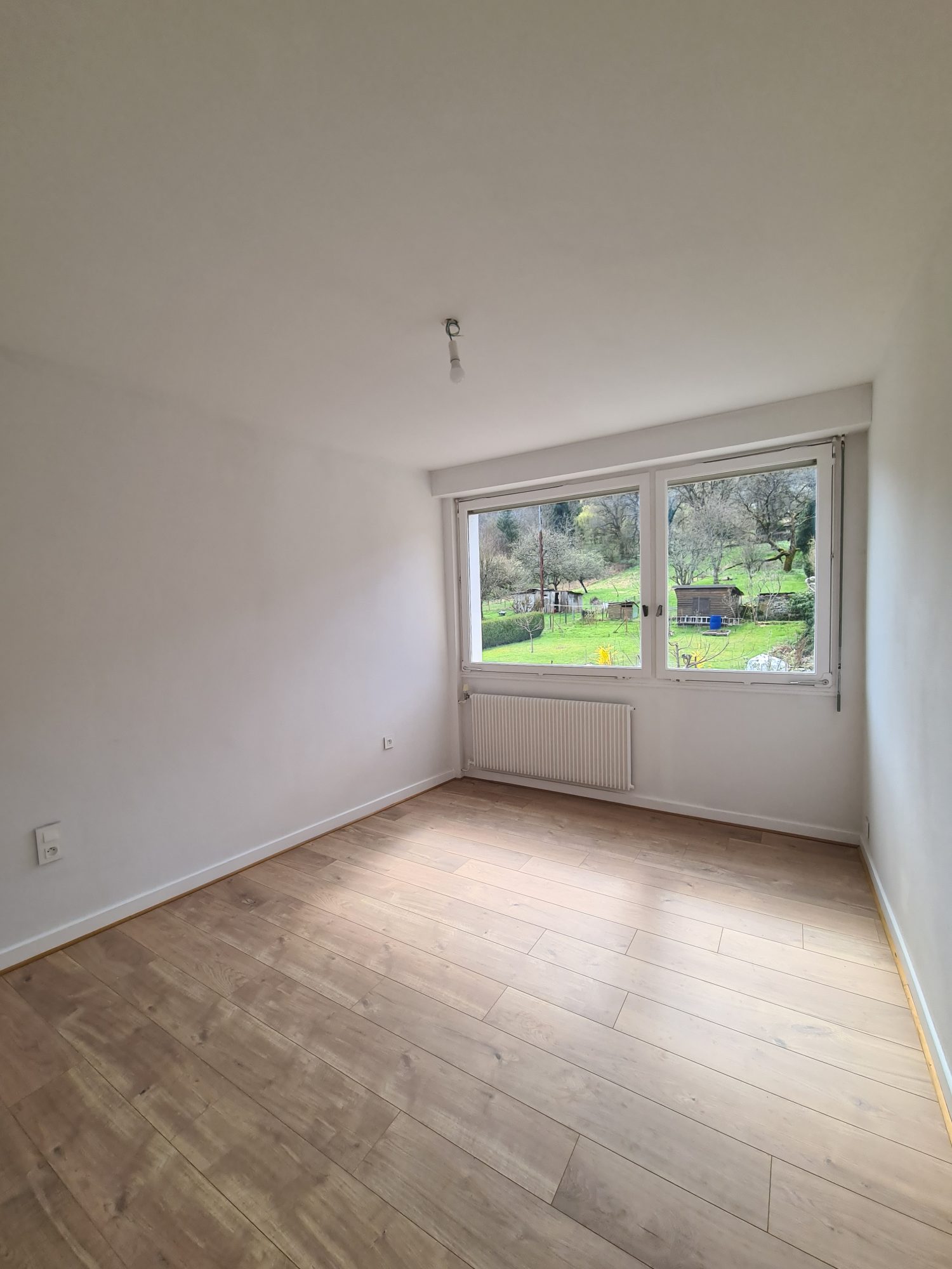 À l’étage supérieur, vous trouverez deux chambres ainsi qu’une salle de bains équipée d’une double vasque et d’un WC.