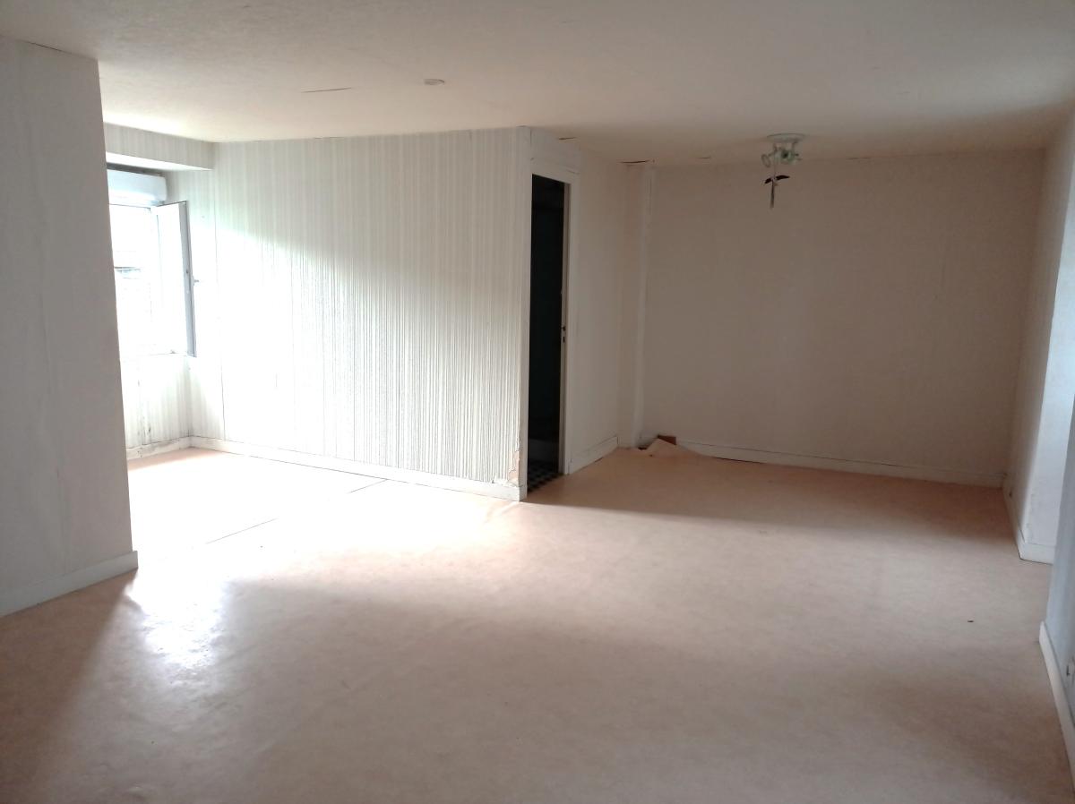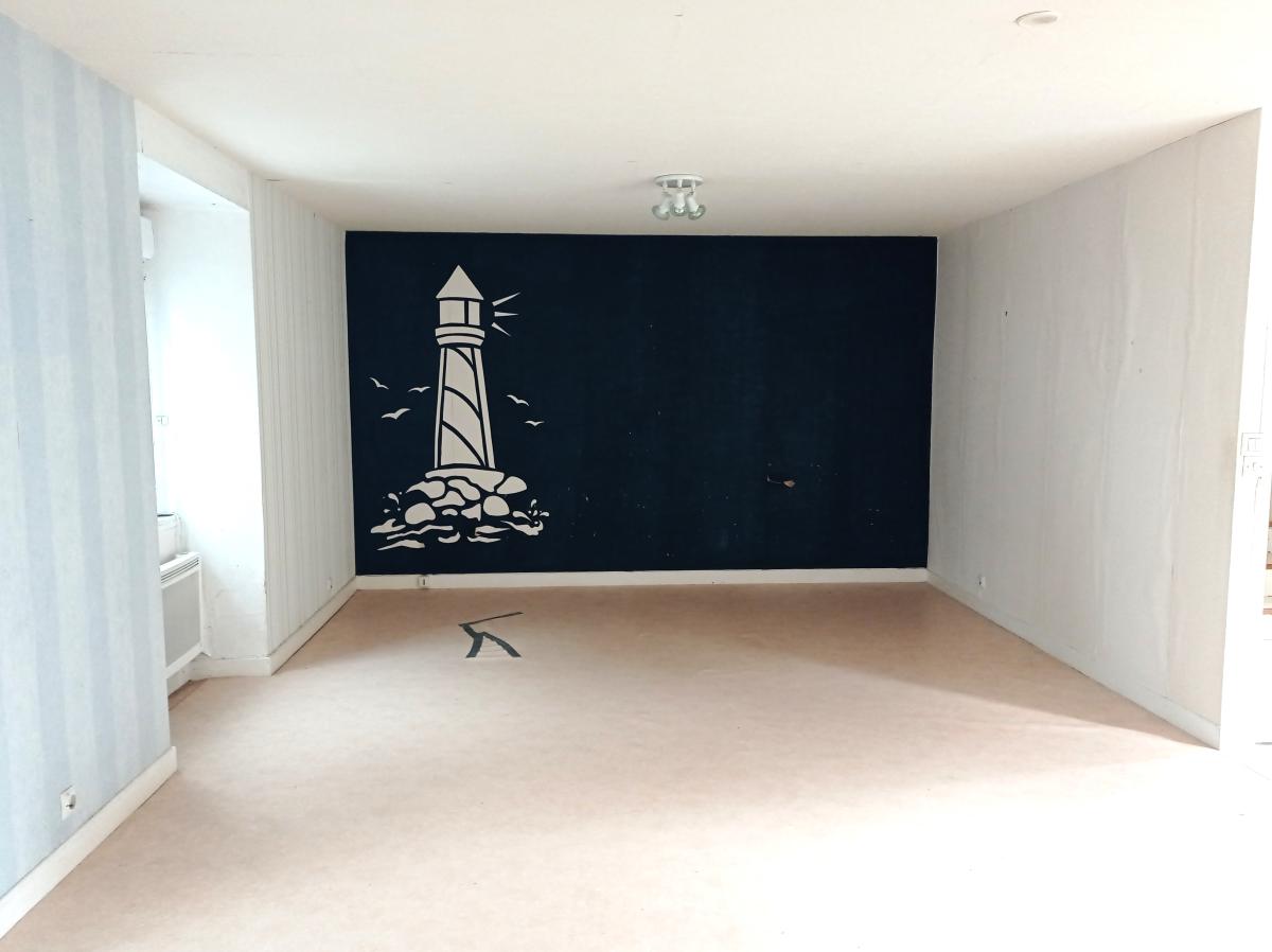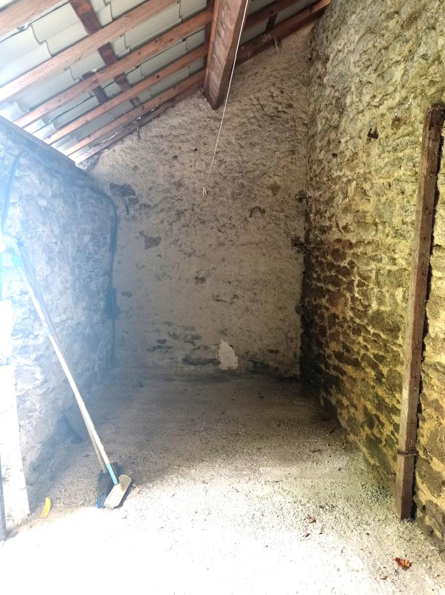 Rez-de-chaussée : grande pièce de vie de 36 m2 avec cuisine aménagée, wc sanibroyeur, accès courette.