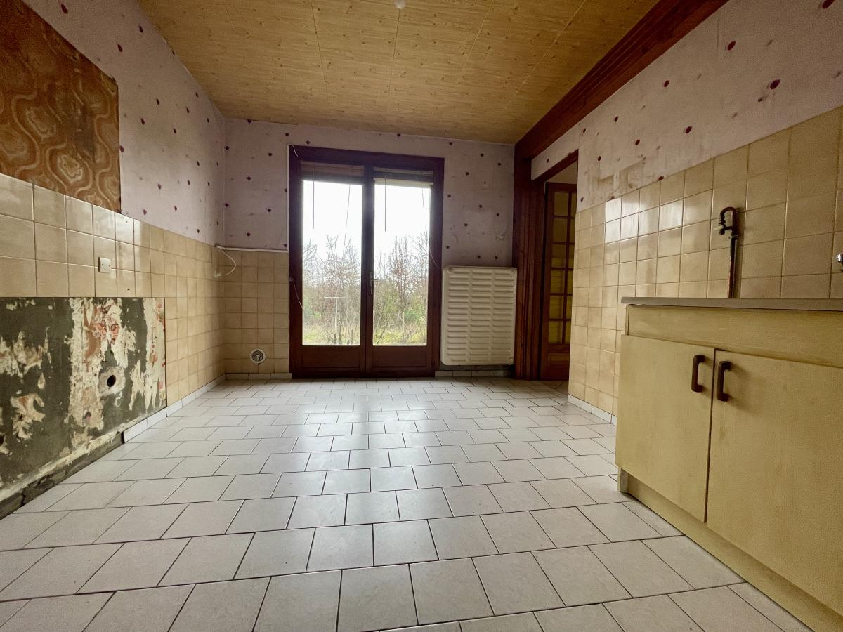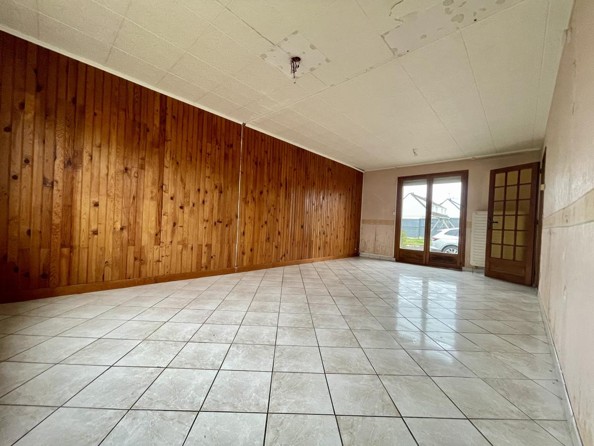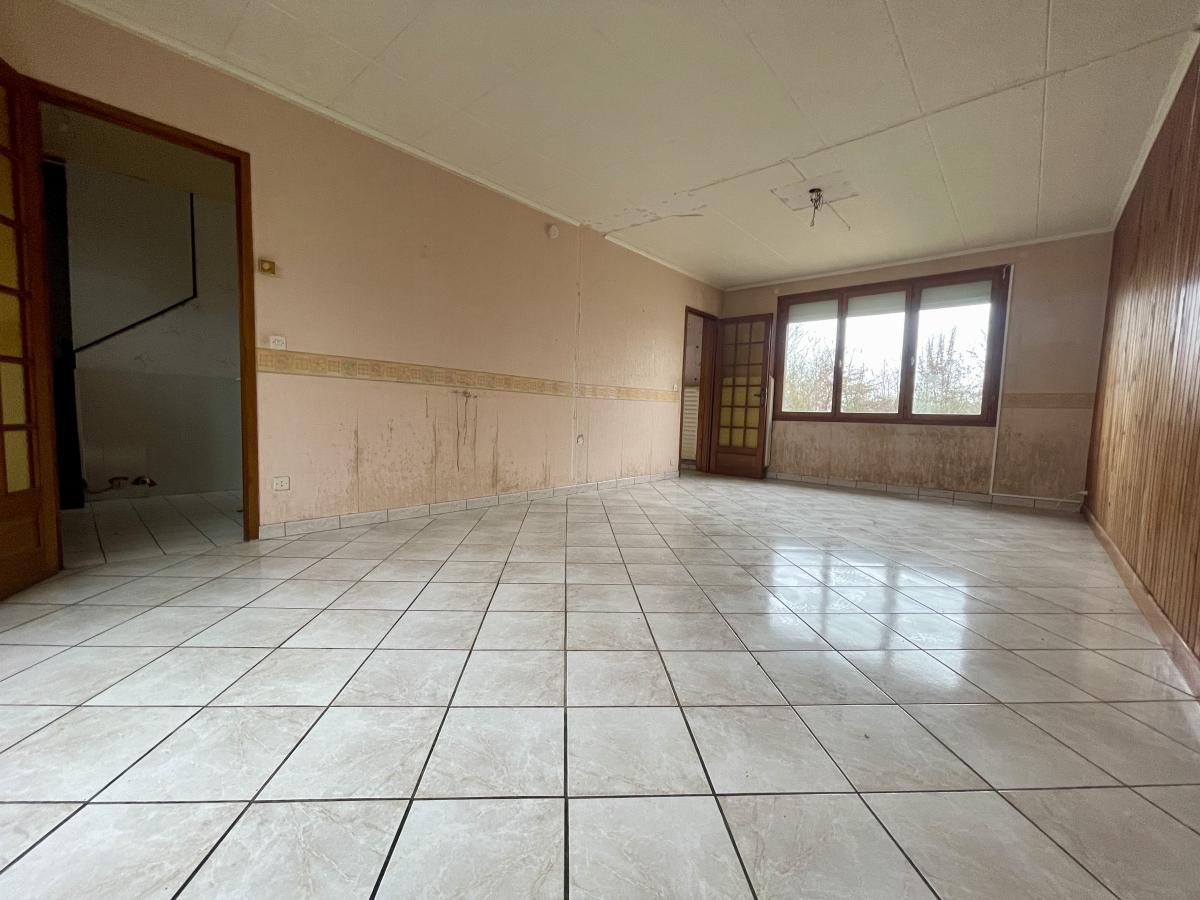 Maison mitoyenne sur la commune de Ribécourt Dreslincourt (60170) comprenant entrée, séjour, une chambre, cuisine, dégagement wc.