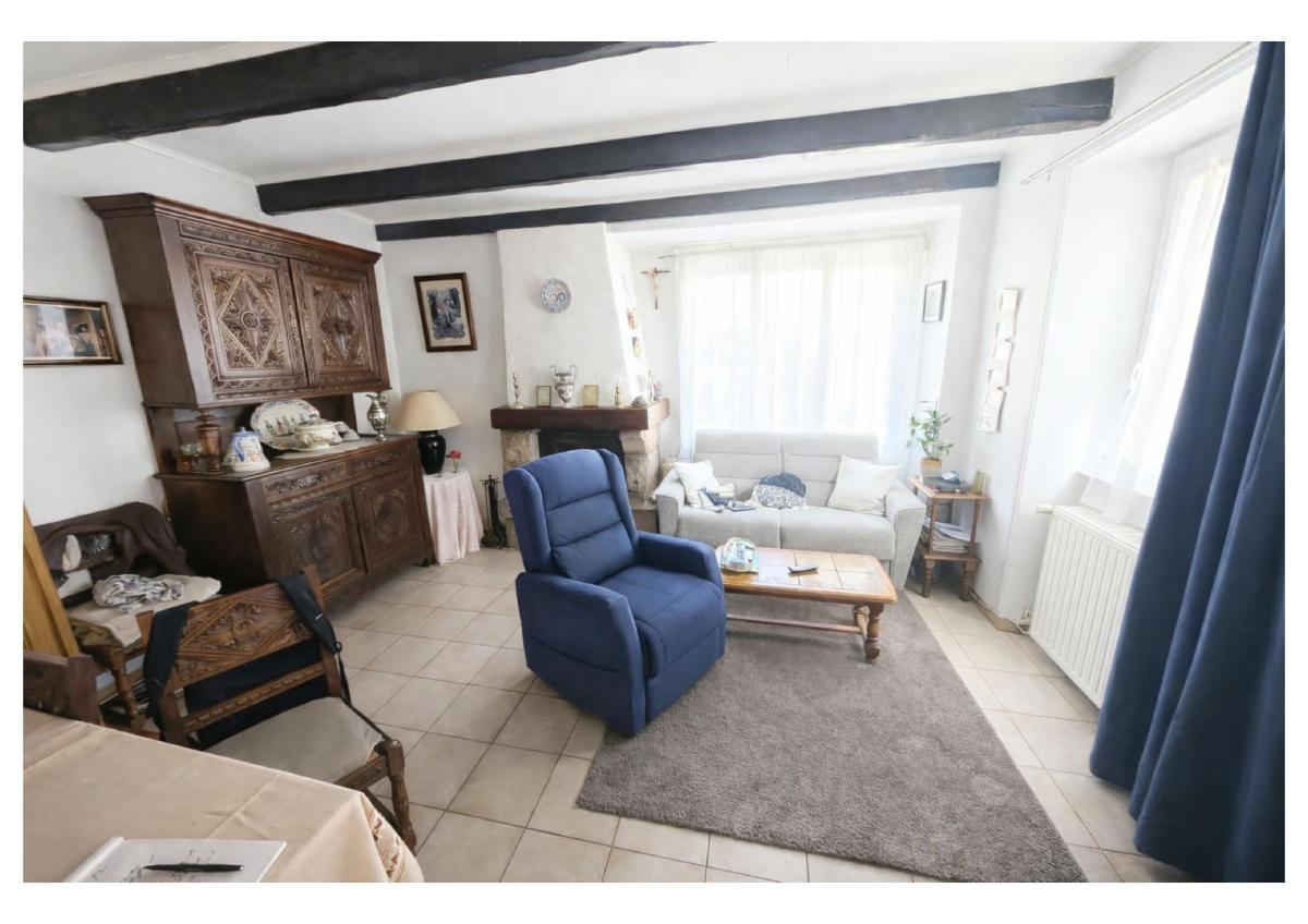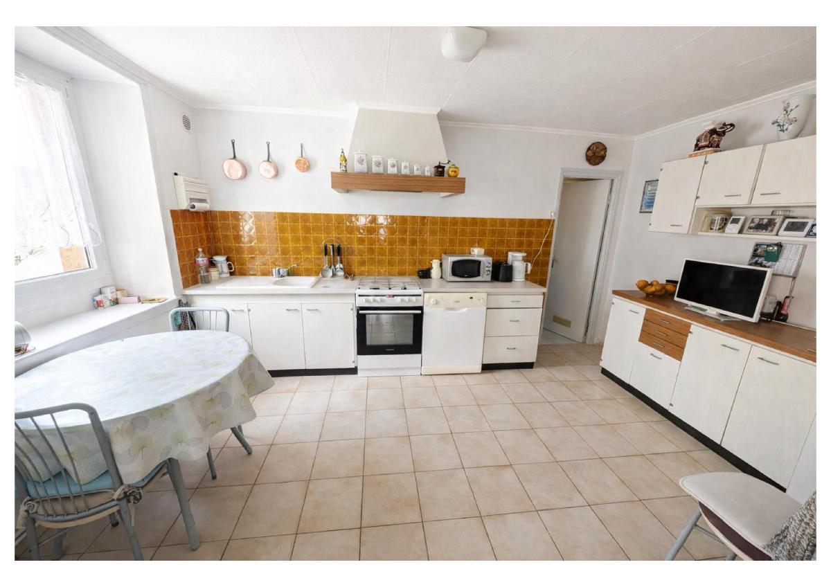 Maison à usage d’habitation principale, raccordée au réseau d’assainissement collectif, avec menuiseries PVC double vitrage et chauffage gaz de ville complété par électricité.
