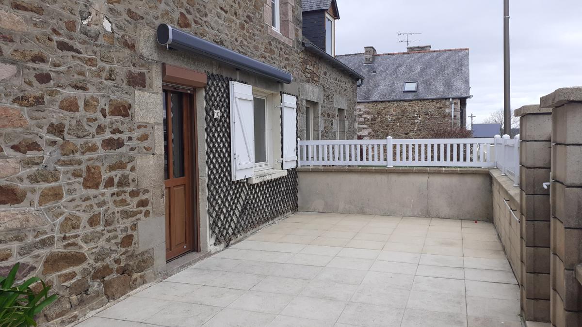 Idéalement située dans le centre de HENANBIHEN, proche des commerces, des écoles et de la crèche, une charmante maison en pierre (83m² hab) comprenant :