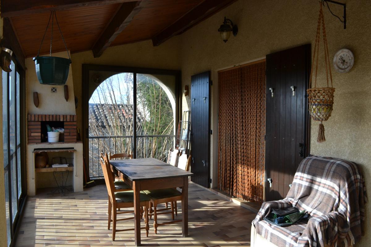 A vendre à Ruoms, Ardèche (07) - Maison individuelle avec terrain attenant de 1485 m² - Construction de 1985 - A deux pas des commerces, dans un secteur calme - Joli terrain avec forage - Assainissement collectif (tout à l'égout) - Surface habitable : 84 m² et 31 m² - Rez-de-chaussée : Garage 29,10 m², Cave 13,20 m², Cuisine d'été 14,50 m², dégagement 11,20 m², Chambre 11,70 m² avec salle d'eau privative + WC 4,60 m² - Etage : Véranda 19,50 m², Hall d'entrée/Couloir de distribution 9,10 m², Cuisine 14,70 m², Salon/Séjour 29,60 m², Chambre 12,20 m², Salle d'eau 4,60 m², WC indépendant 1,20 m², Chambre 12 m²