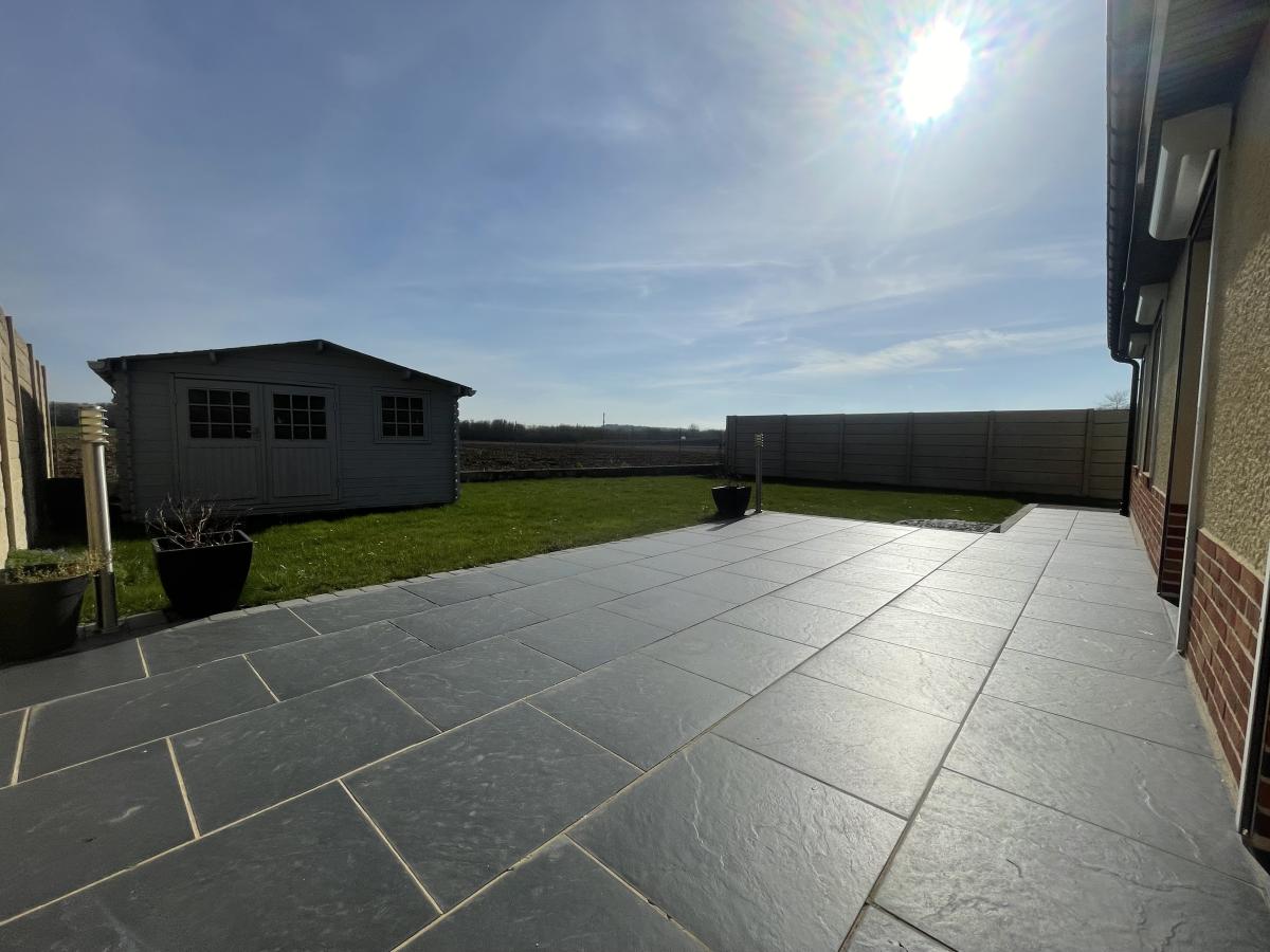 Dainville, Maison individuelle plain pied, en excellent état comprenant : Entrée avec placards,cuisine aménagée,salon -séjour lumineux donnant sur la terrasse,3 chambres, salle de bains,Wc.