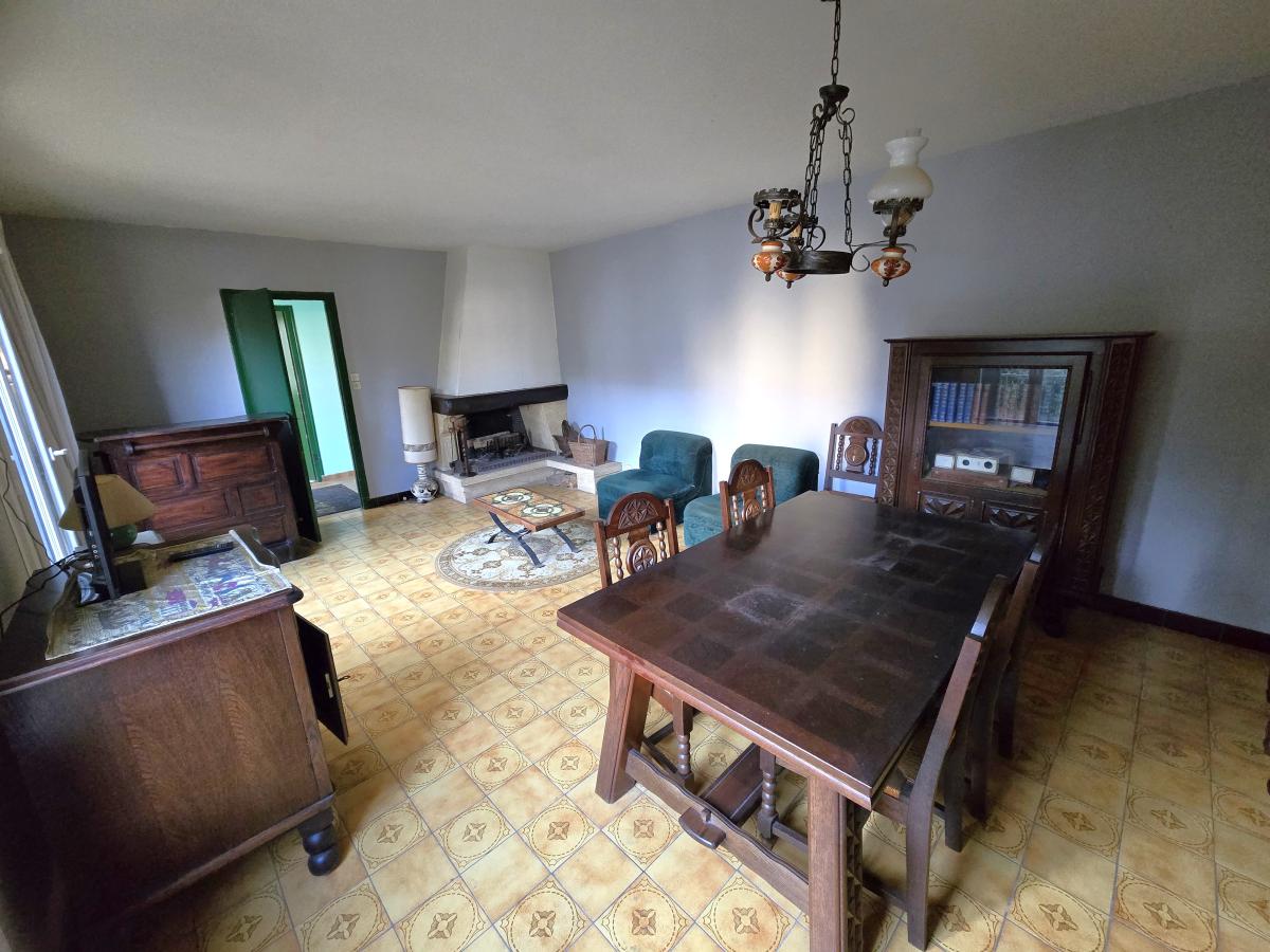 Au rez-de-chaussée une entrée desservant une cuisine, un double séjour avec cheminée, trois chambres dont deux avec placards, une salle de bains et des WC séparés.