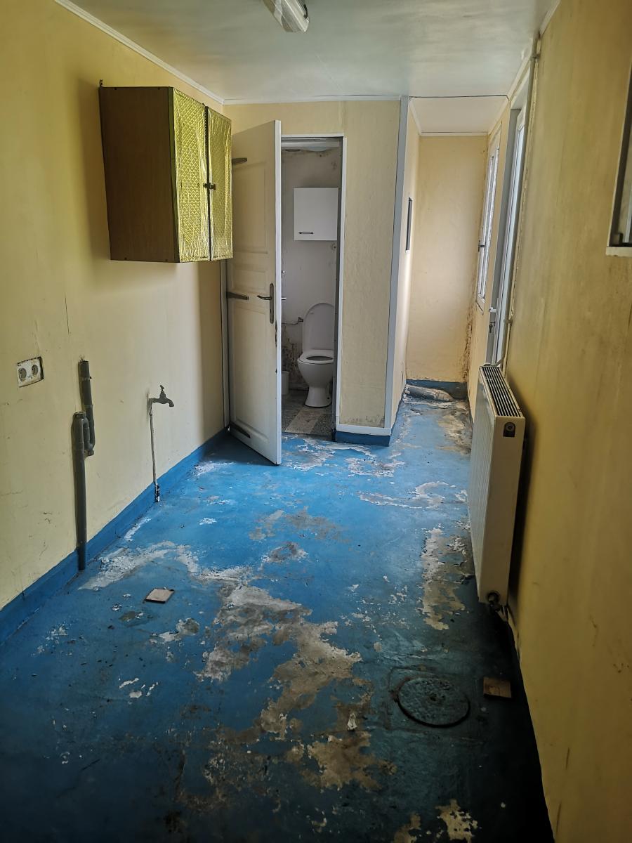 Entrée, salle de séjour, grande cuisine, laverie, wc, salle de bains ;