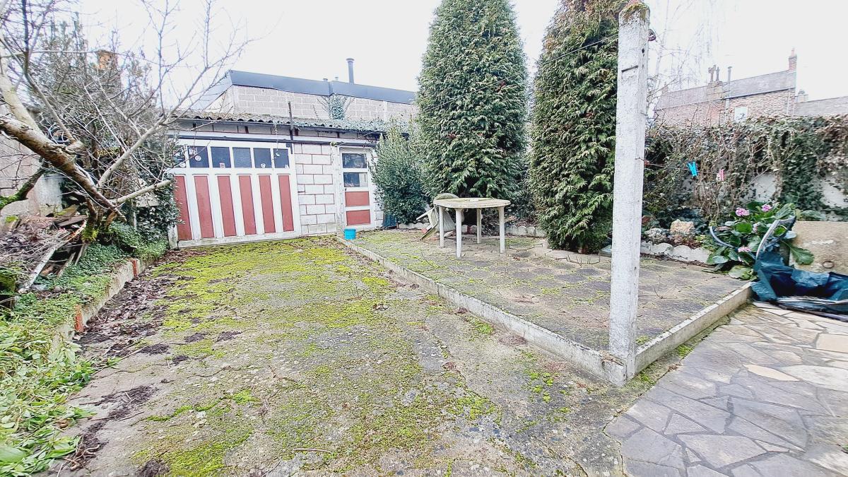 Vous disposerez d'une cour avec partie jardin clos d'une superficie totale de 226 m² ainsi qu'un garage d'environ 30 m² au sol ( chape béton ) et grenier au-dessus.