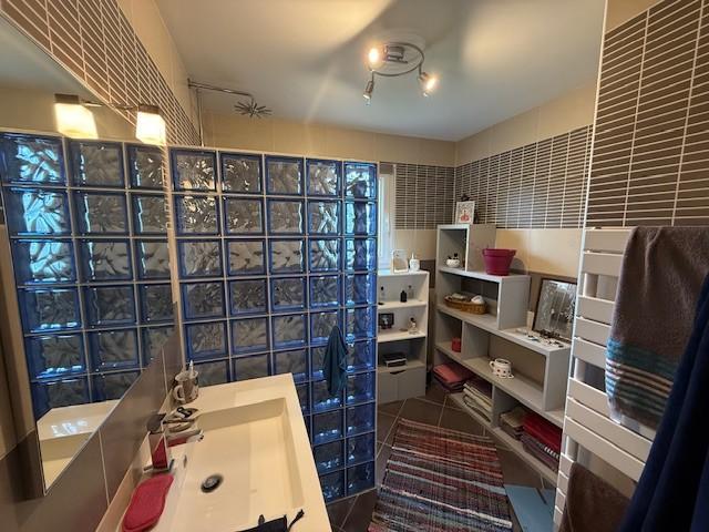 Séjour-salob avecpoêle granulés, cuisine ouverte aménagée et équipée, terrasse, 3 chambres, salle d'eau, wc indépendant, cellier, garage.