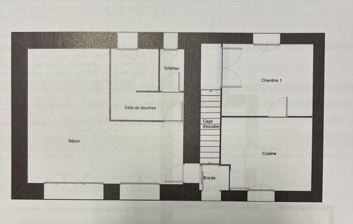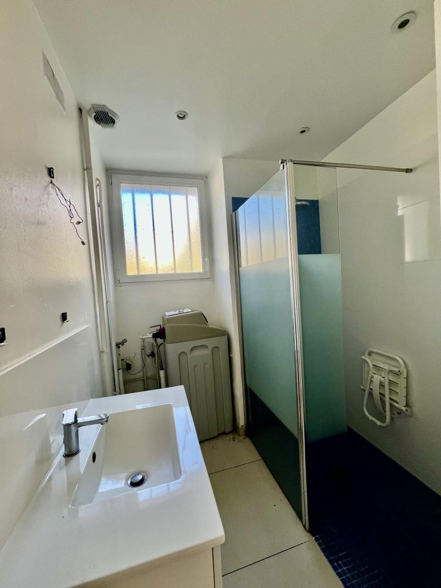 Sur un terrain de 895m², maison non mitoyenne offrant de plain-pied : un salon séjour exposé plein sud de 30m² avec cheminée insert, , une cuisine indépendante, une chambre, une salle d'eau et wc.
