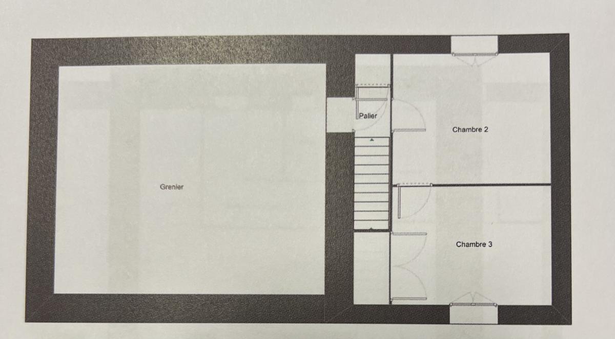 L'étage se compose de deux chambres et d'un grenier aménageable de 30m²..