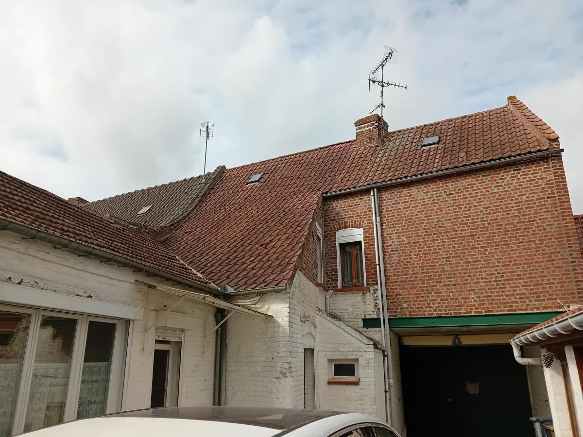 VITRY EN ARTOIS - Maison style fermette, à rénover, comprenant : s/cave - RDC : séjour, salon, cuisine - Etage : palier, 3 chambres, sdb - Grenier aménageable au-dessus - C/C fuel - Grand garage - Grange donnant sur un jardin - S/553 m²