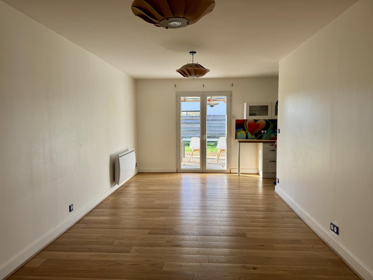 Au rez-de-chaussée, vous découvrirez une entrée, un salon-séjour lumineux donnant accès à une grande terrasse exposée ouest, une cuisine, un WC indépendant, une arrière-cuisine ainsi qu’une chambre.