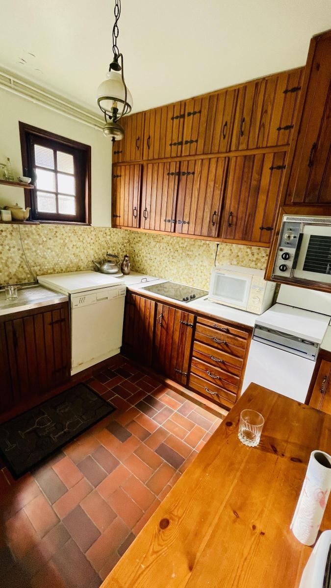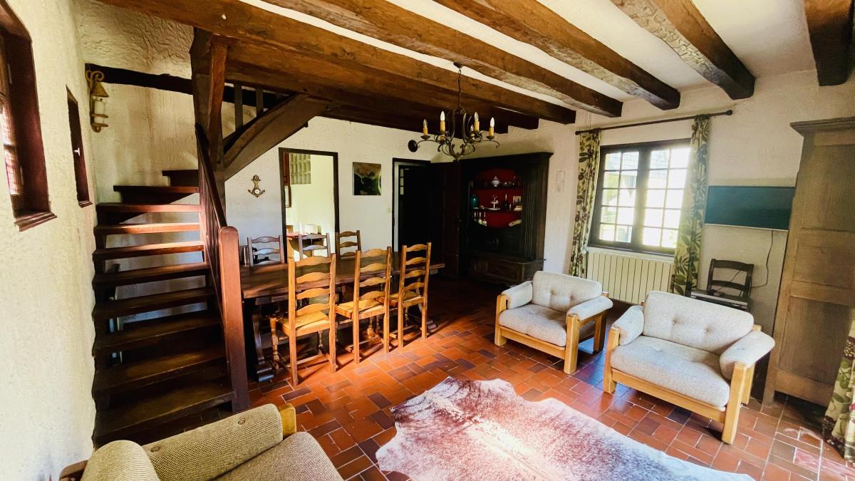 L’habitation a été bâtie en 1971, puis agrandie en 1993, pour proposer aujourd’hui une surface habitable d’environ 95 m². Le rez-de-chaussée comprend une entrée, un séjour salon lumineux, une cuisine attenante, une pièce de vie agrandie par de grandes baies vitrées à galandage, des WC, une salle de bains, ainsi que trois remises dont l’une dessert un couchage double installé sous les rampants. À l’étage, un palier mène à une première chambre modulable offrant trois couchages, dont un en mezzanine, avec rangements intégrés et climatisation. On y trouve également un cabinet de toilette équipé d’une double vasque et d’un bidet, ainsi qu’une seconde chambre parentale, elle aussi climatisée et dotée de rangements.