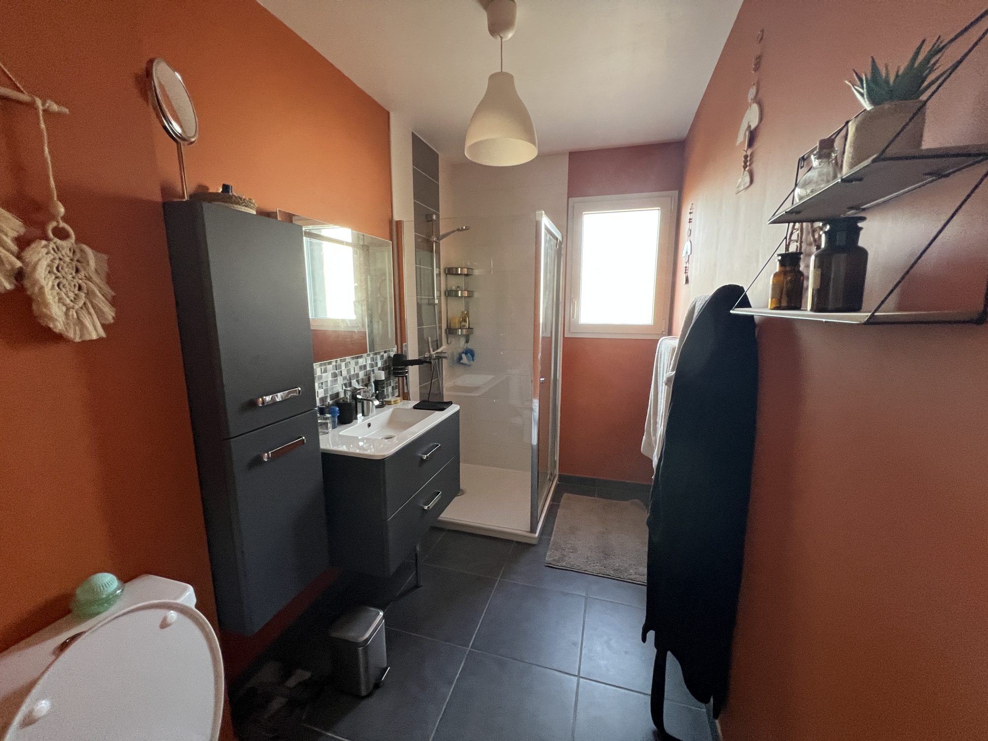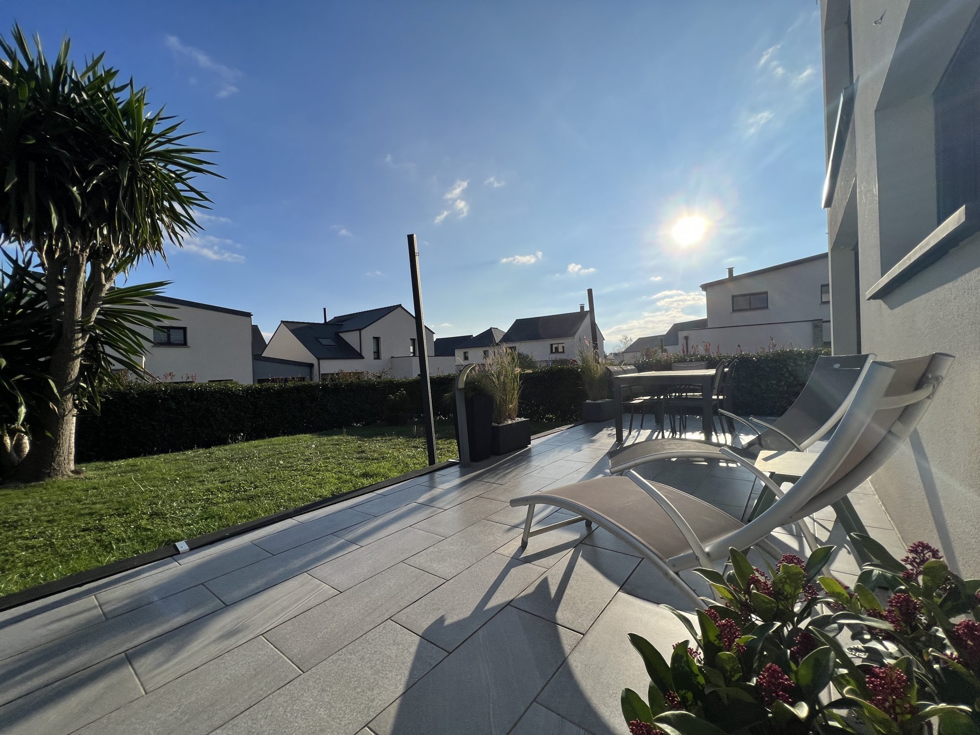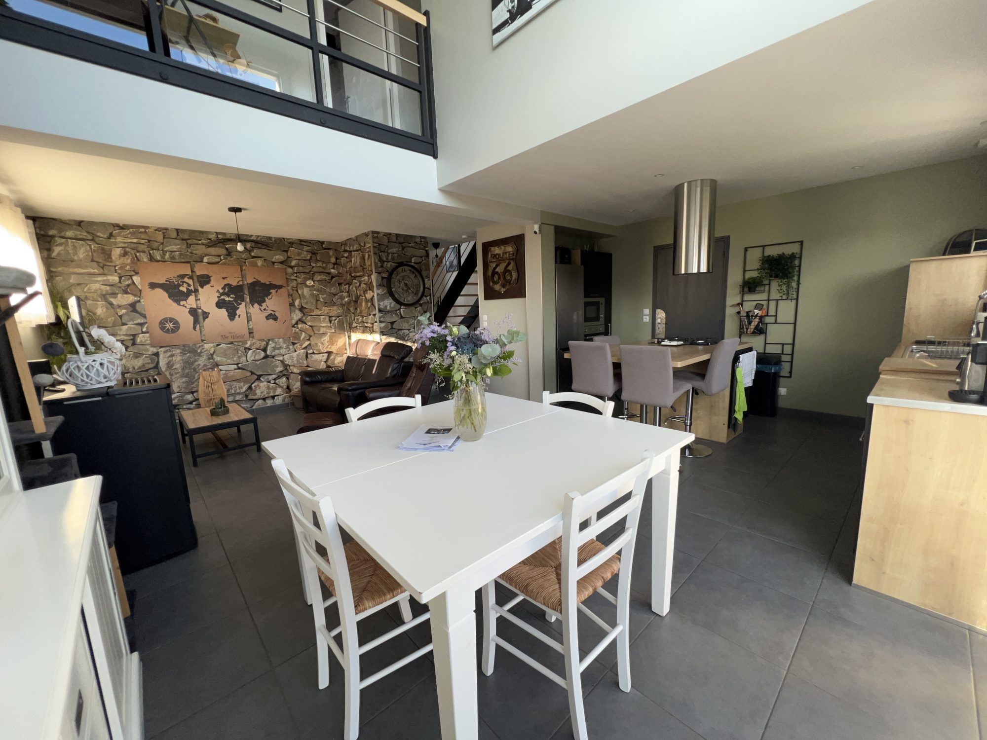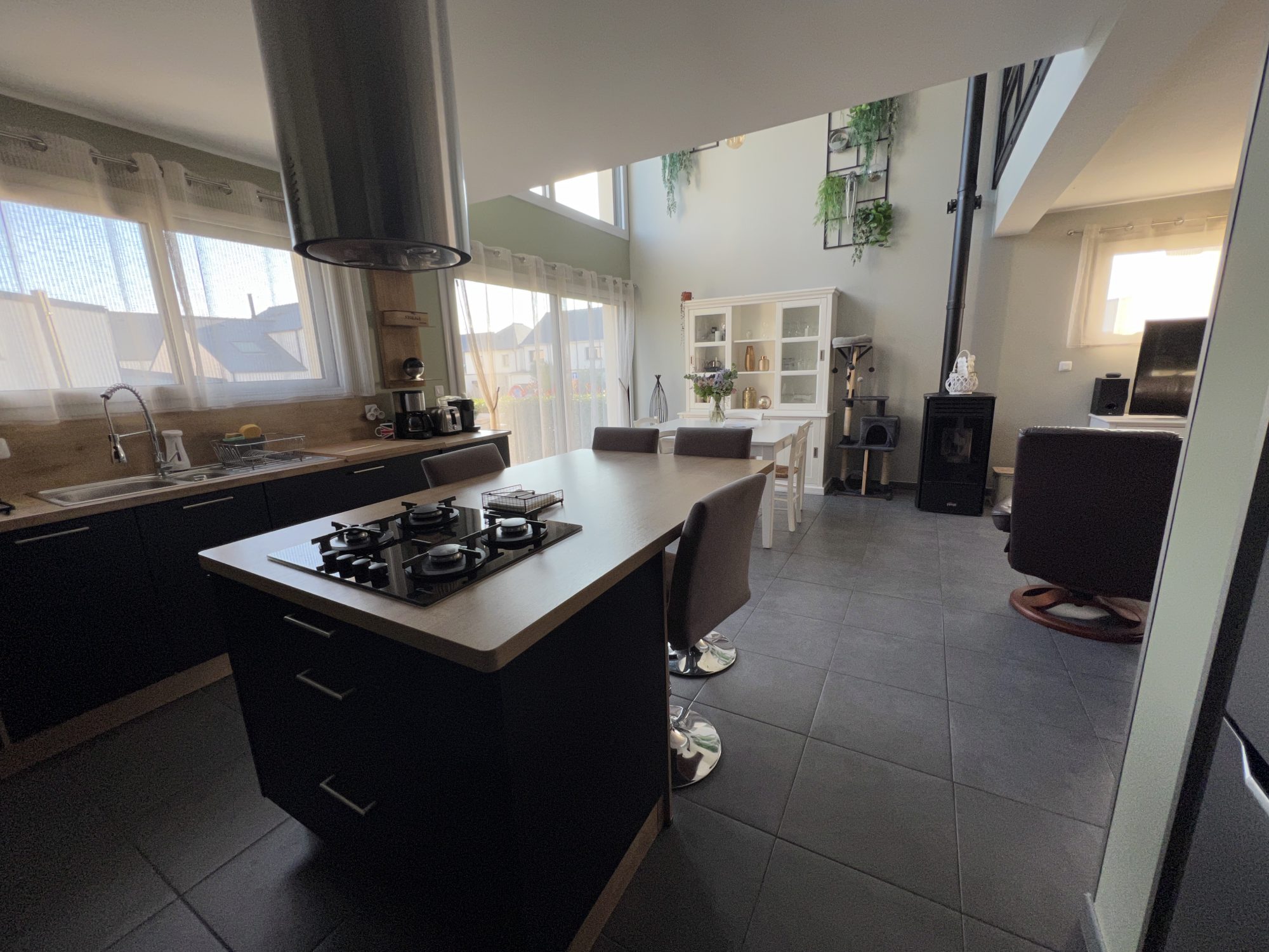 Une maison d'habitation récente à vendre située sur la commune de CHATEAUGIRON (35410), dans un lotissement proche du centre-bourg. Maison composée d'un hall d'entrée (placard), une chambre avec placards et salle d'eau privative, un cabinet de toilette, un salon-salle à manger (avec poêle) orienté Sud et Ouest et cuisine ouverte aménagée/équipée (+ arrière cuisine). A l'étage: palier-mezzanine, deux chambres avec placard, une salle d'eau avec wc. Garage attenant avec porte motorisée et deux stationnements. Terrasse et jardin clos vers le Sud. Sur un terrain d'environ 325m2. Les informations sur les risques auxquels ce bien est exposé sont disponibles sur le site Géorisques : georisques.gouv.fr
