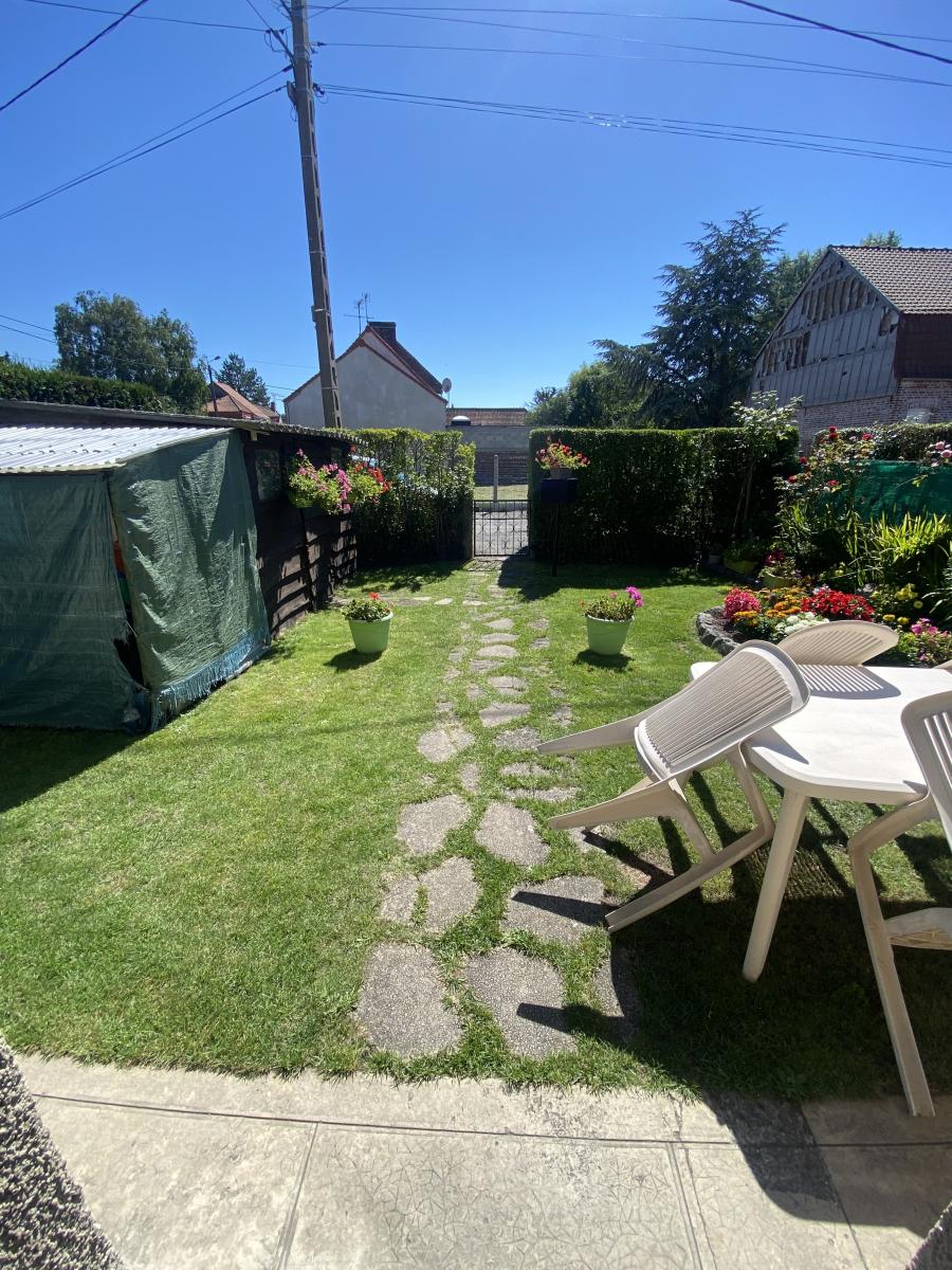 Maison mitoyenne offrant au rez-de-chaussée : un séjour lumineux, une cuisine, un cellier, une salle de bains, WC et une chambre.