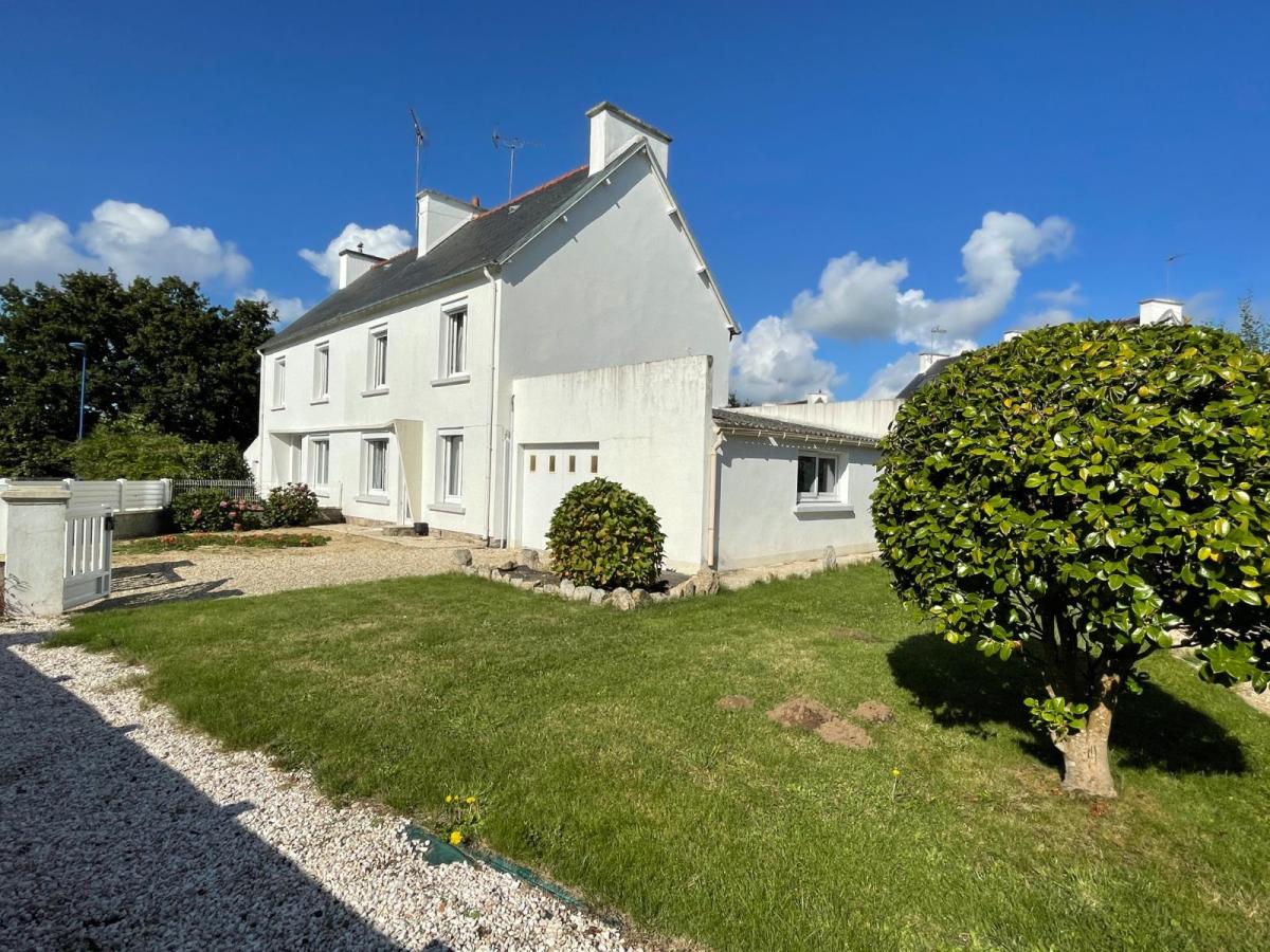 Névez, NOUVEAUTE, maison située au centre bourg. Elle se compose d'une entrée, coin cuisine, séjour, wc, une chambre, véranda et dégagement. A l'étage, dégagement, trois chambres, salle d'eau et wc. Garage. Toiture en ardoise et crochets en inox, fenêtres PVC. Terrain de 458 m2.