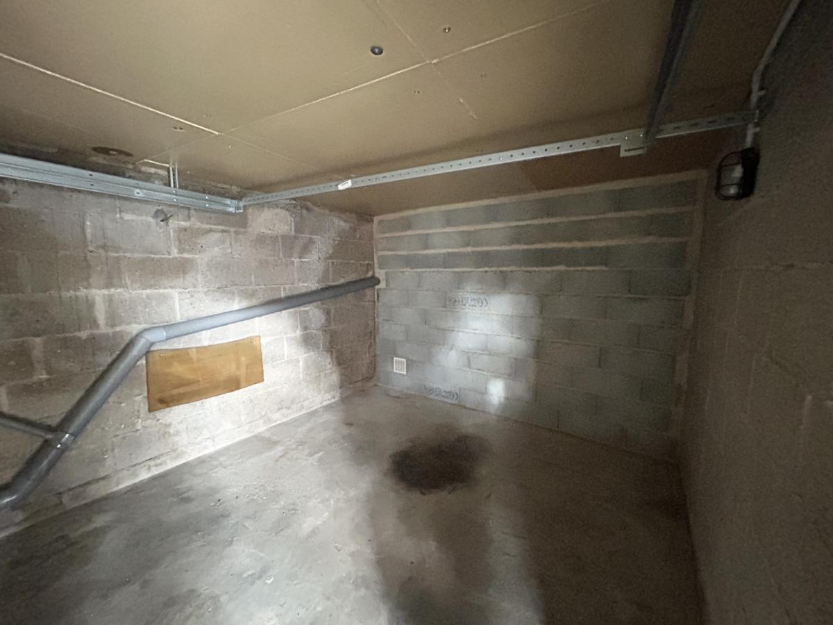 Sans cour ni jardin, la propriété ne nécessite pas d'entretien extérieur. Elle dispose de deux petits garages et d'une place de stationnement.