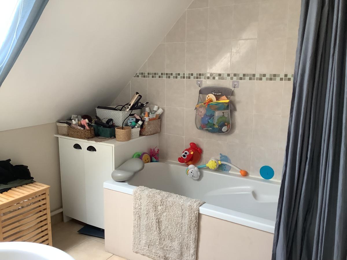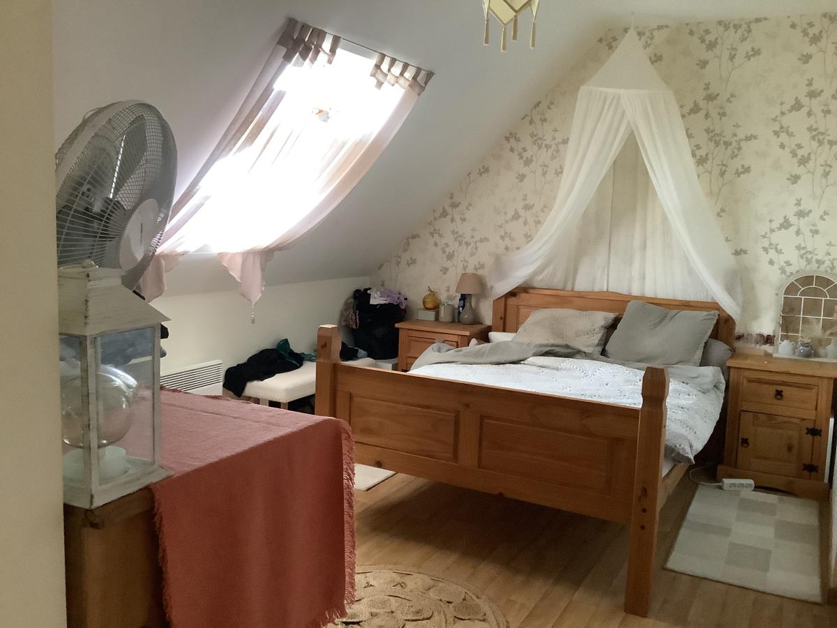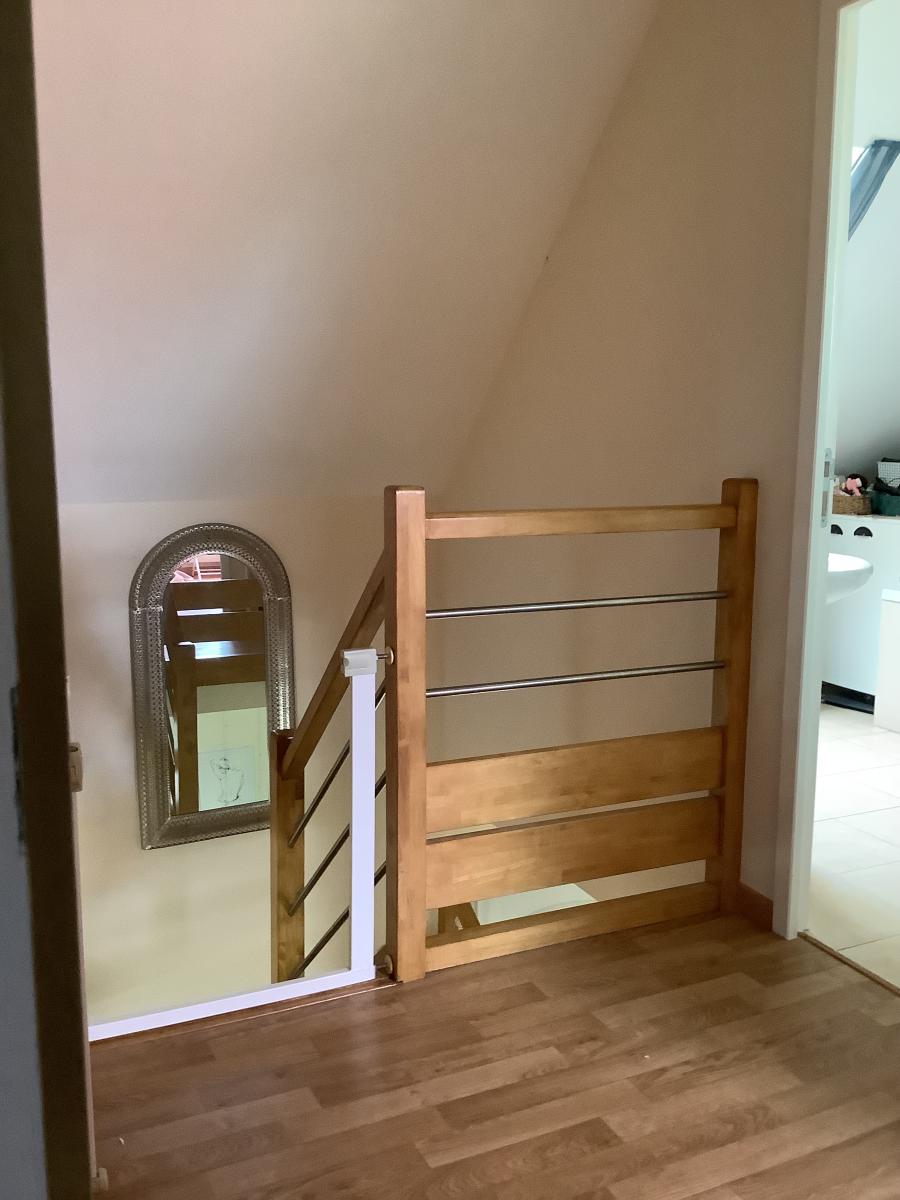 A l'étage: un palier desservant trois chambres, une salle de bains avec un wc, une salle de douche.