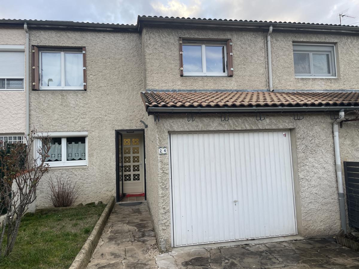 Agréable Maison à vendre située à Valence, Quartier Laprat, d'une surface de 97,39 m², comprenant 5 pièces. Elle dispose en rez-de-chaussée d'un hall d'entrée avec placard, une cuisine équipée, un beau salon séjour donnant sur une terrasse, un WC indépendant, à l'étage d'une salle de bain, un WC indépendant et 4 chambres.