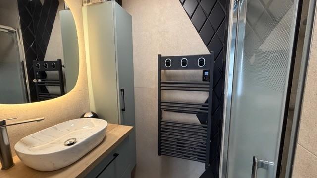 - Au rez-de-chaussée : entrée, séjour-salon avec cuisine ouverture aménagée et équipée, une chambre avec salle d'eau, WC, buanderie.