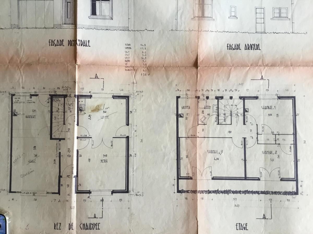 - à l'étage : palier, trois chambres (9 - 9 - 14,70 m²), salle d'eau, débarras.
