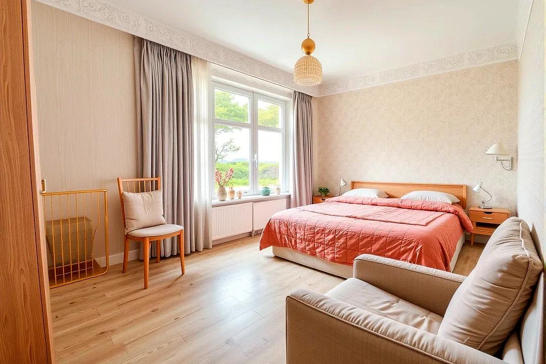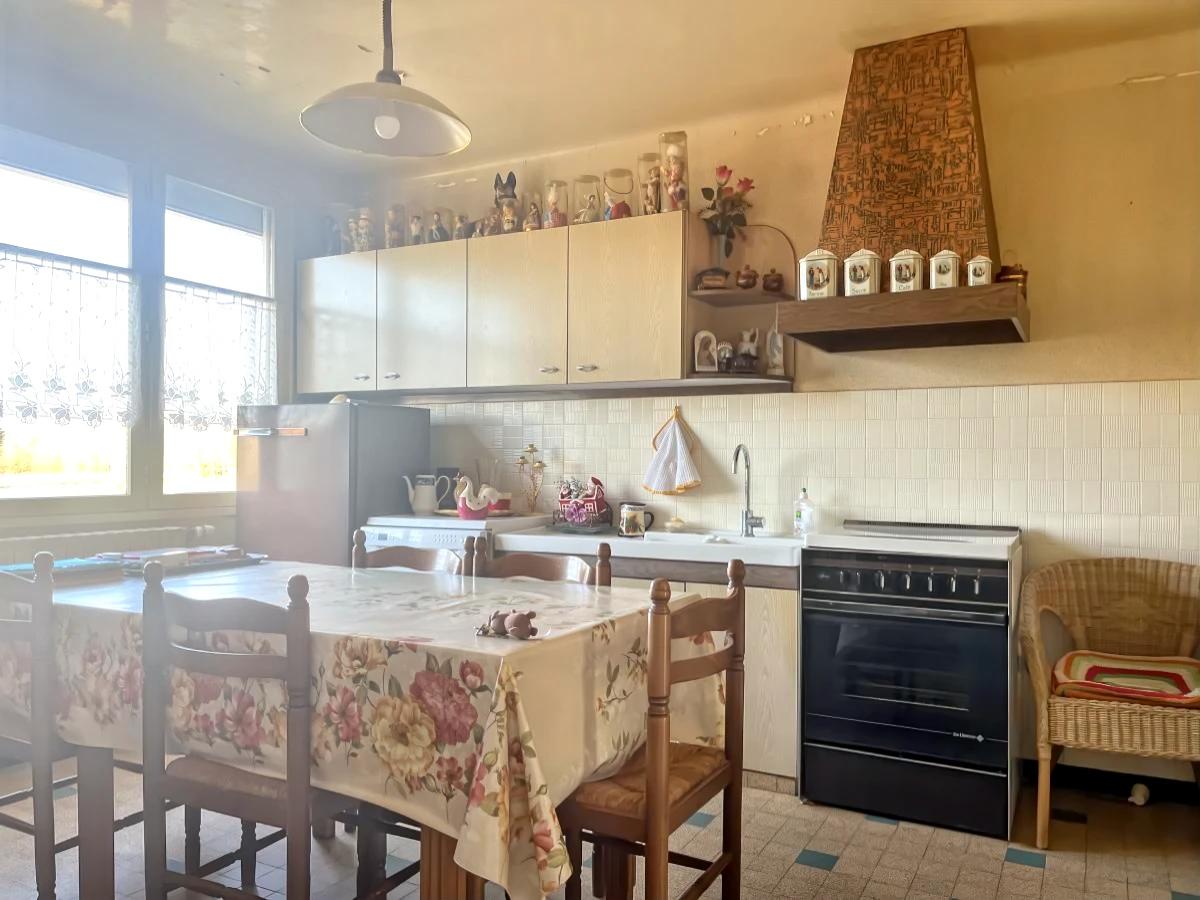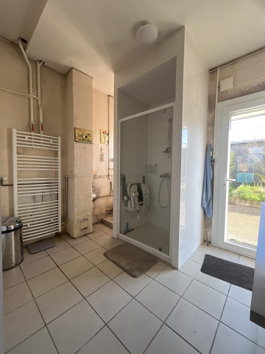 - au rez-de-chaussée : entrée, cuisine, arrière-cuisine avec douche, séjour (14,80 m²), salon (11 m²), WC ;