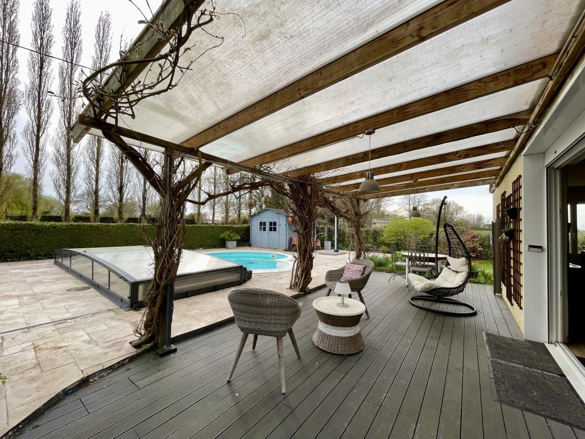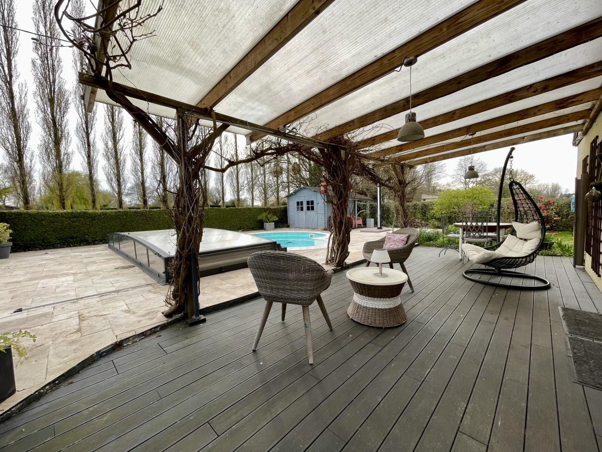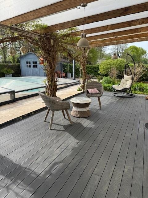Pour compléter cette maison une grande terrasse avec un accès direct sur la piscine .