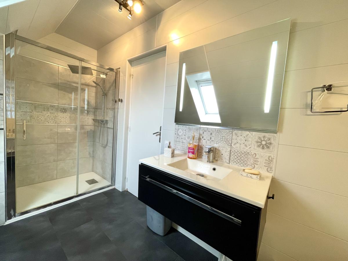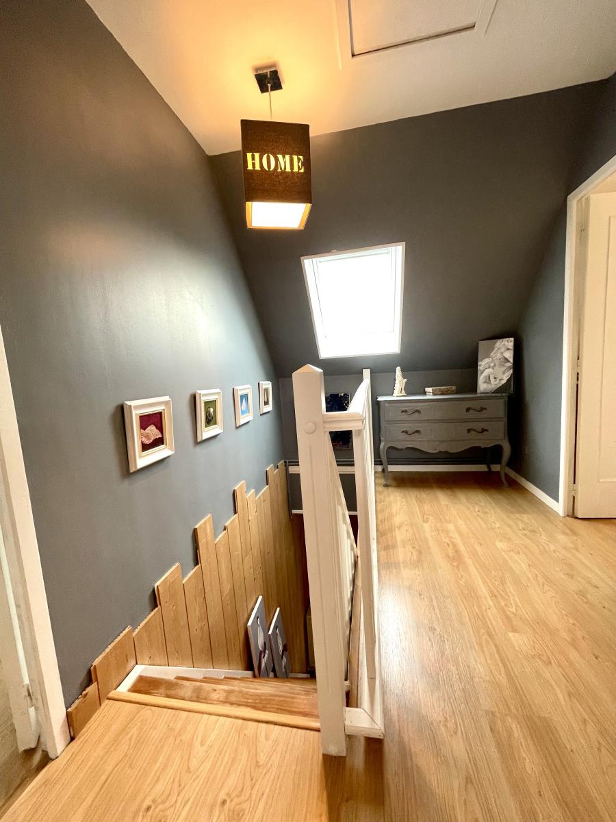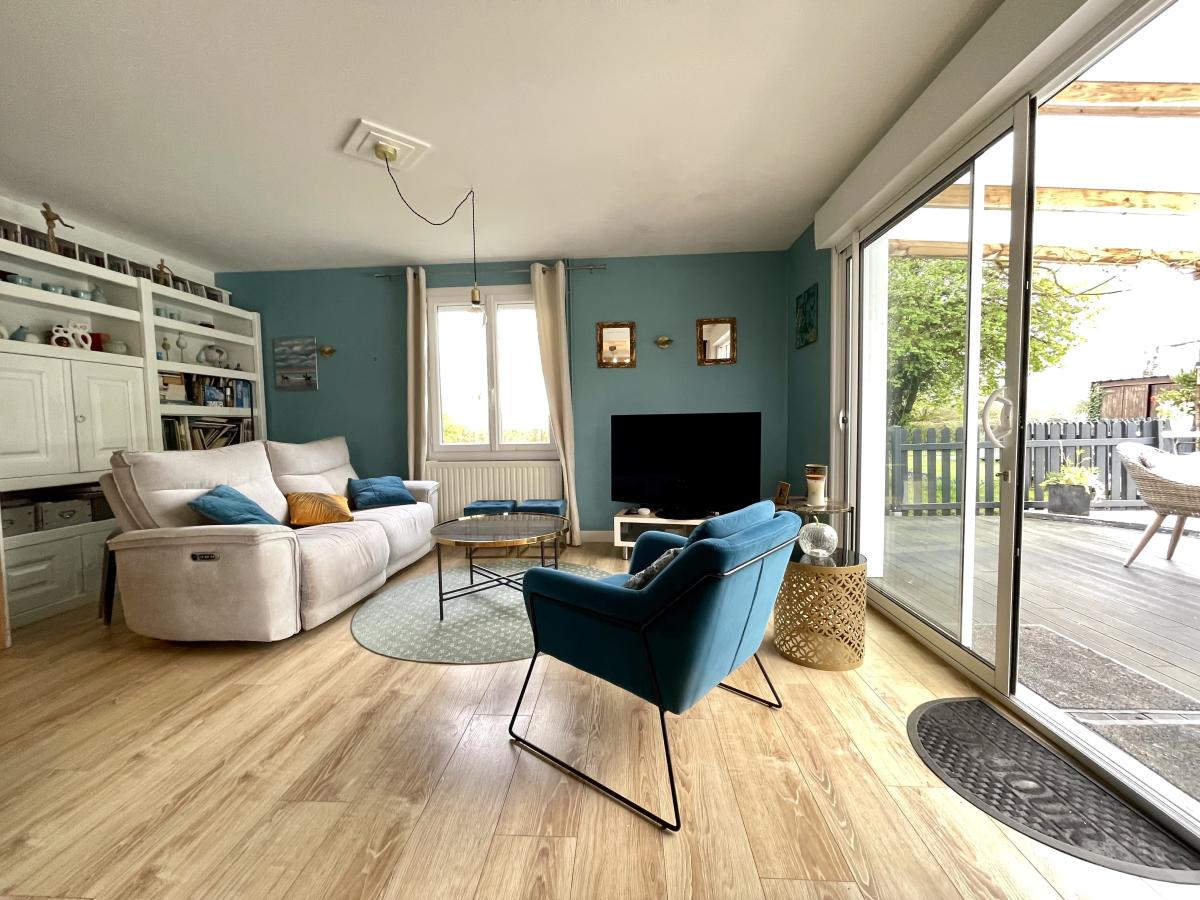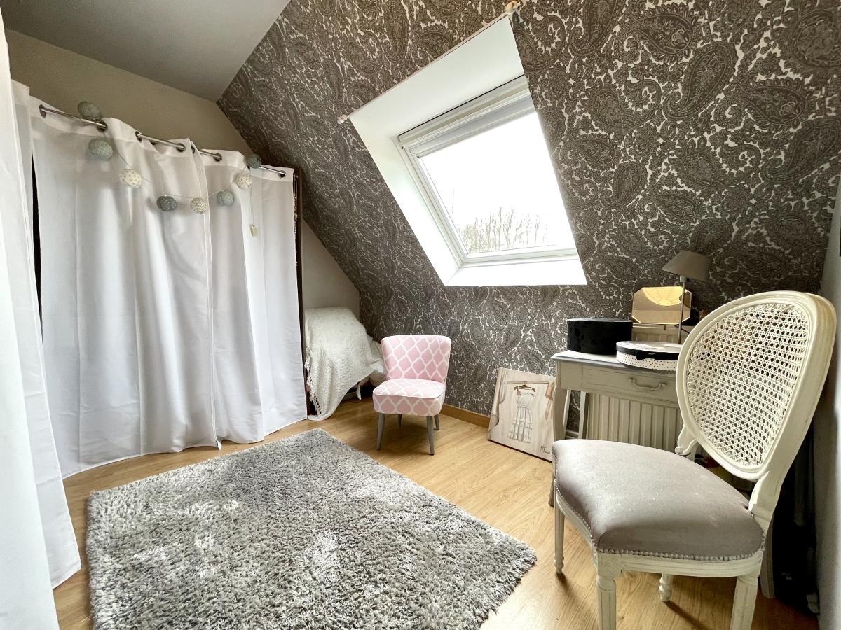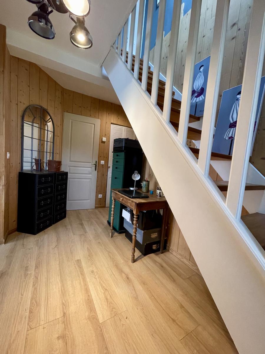 Au rez-de-chaussée une entrée desservant un séjour avec poêle à granulés , cuisine aménagée et équipée ouverte , une chambre avec salle d'eau , wc , véranda et garage .