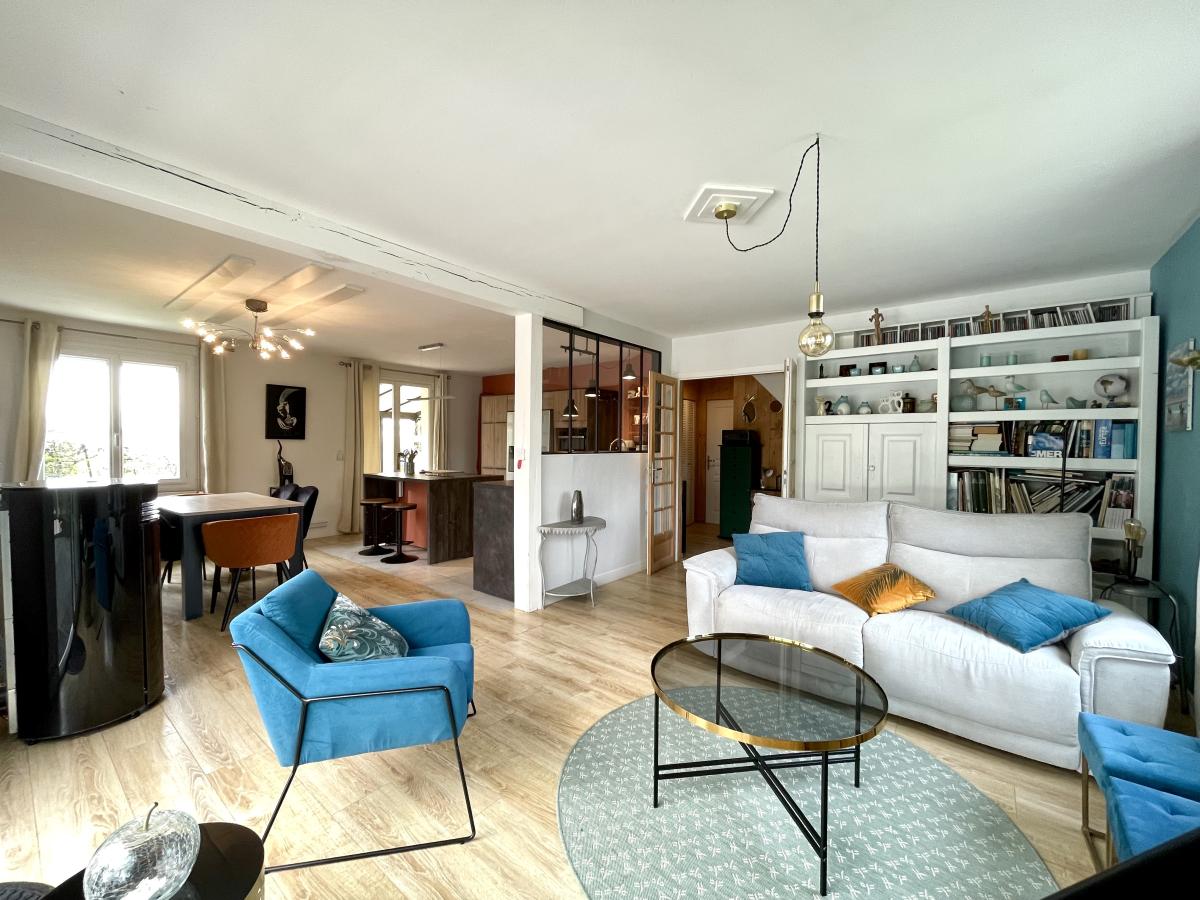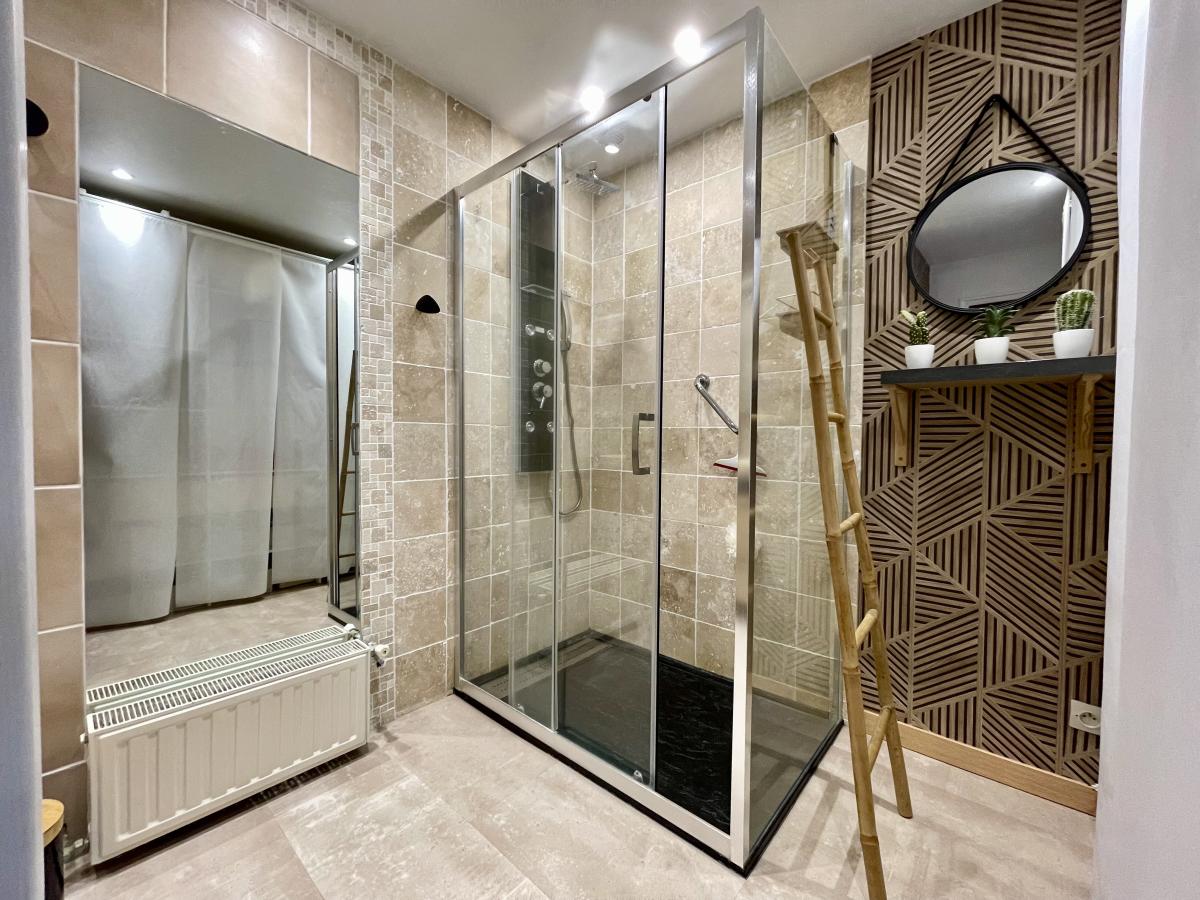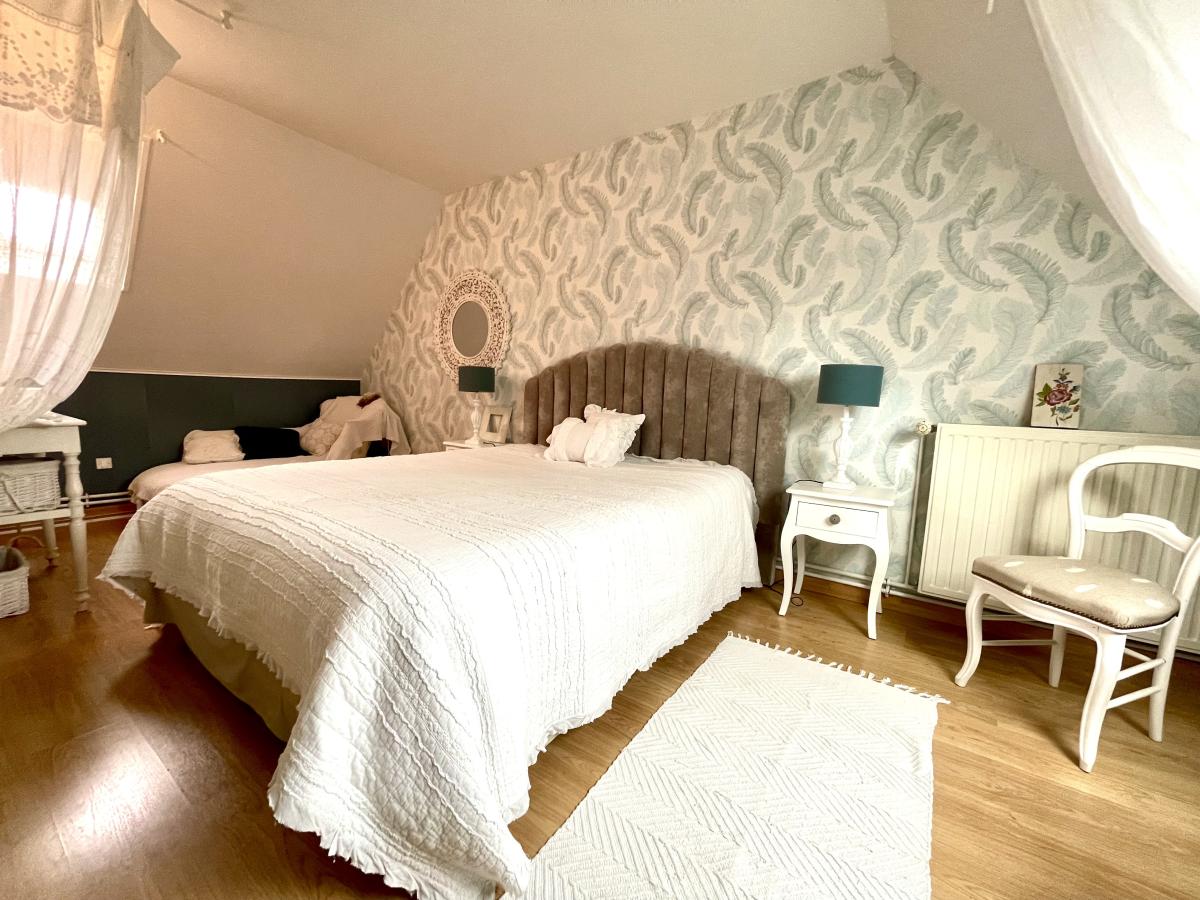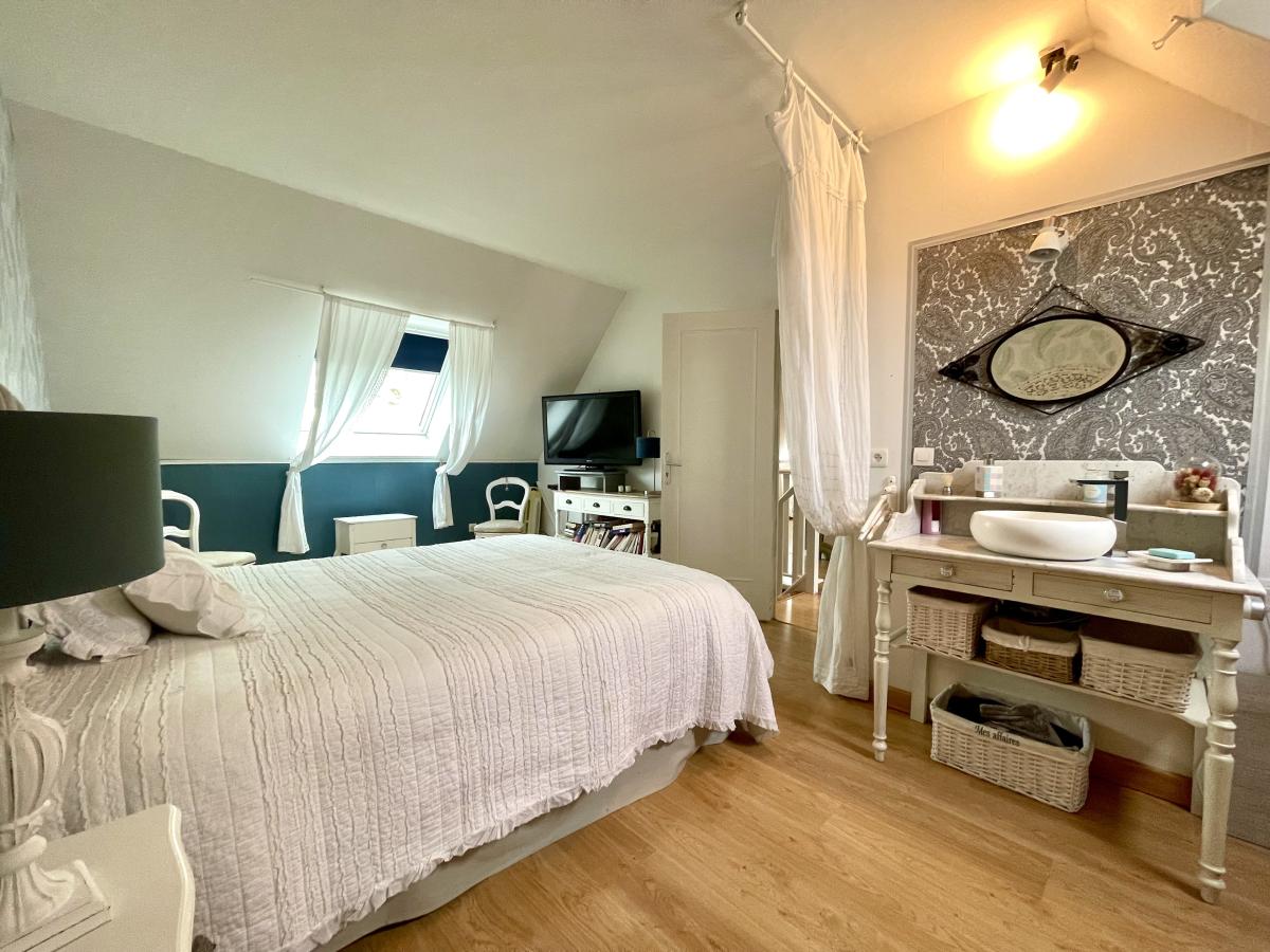 Au rez-de-chaussée une entrée desservant un séjour avec poêle à granulés , cuisine aménagée et équipée ouverte , une chambre avec salle d'eau , wc , véranda et garage .