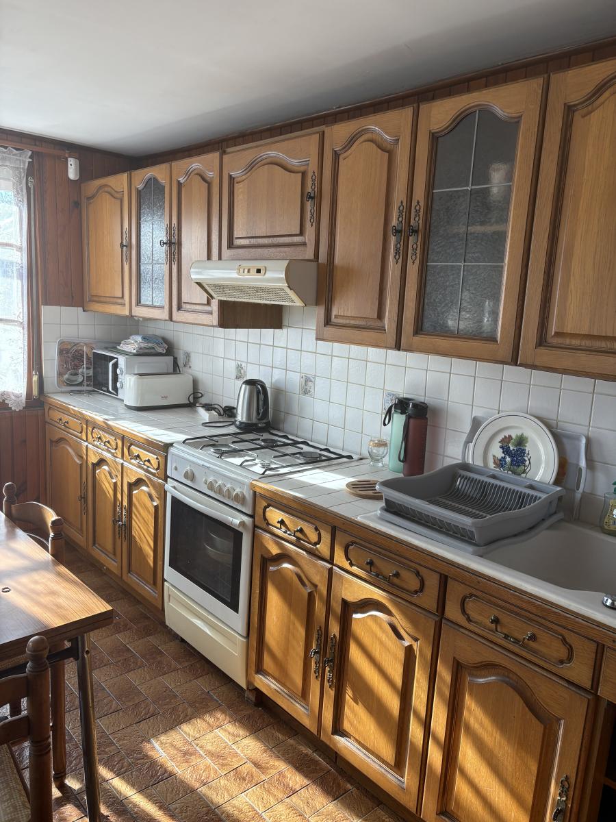 Agréable Maison, idéal pour un primo accédant disposant au rez-de-chaussée d’un couloir d’entrée avec WC, d’un salon, et d’une salle à manger, une cuisine équipée, une salle d’eau avec placard de rangement et d’une lingerie.