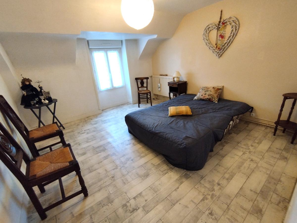 Une maison de bourg construite en pierre comprenant au rez-de-chaussée : Une cuisine aménagée équipée, un salon séjour, une chambre, une chaufferie et wc indépendant. A l'étage : un palier, trois chambres et une salle d'eau avec wc.