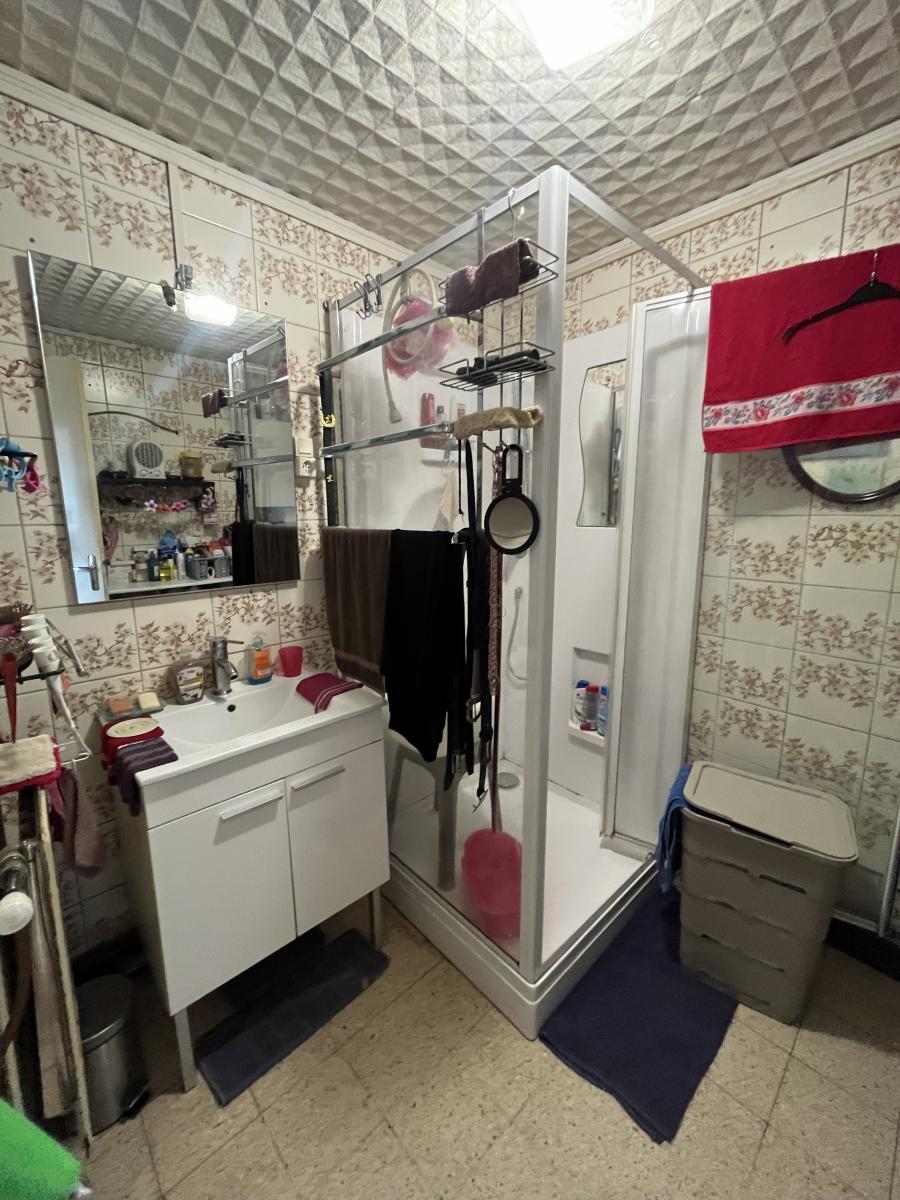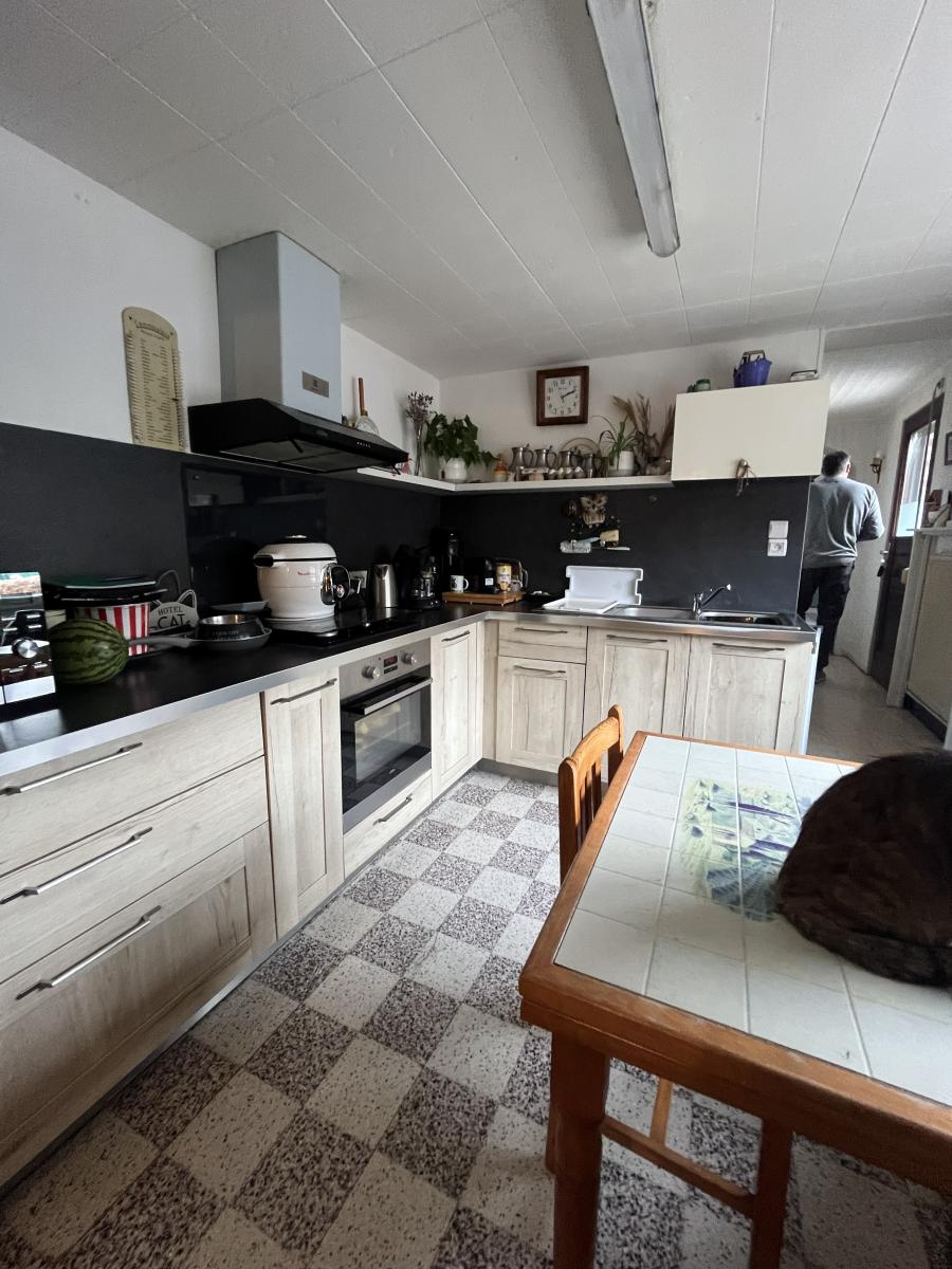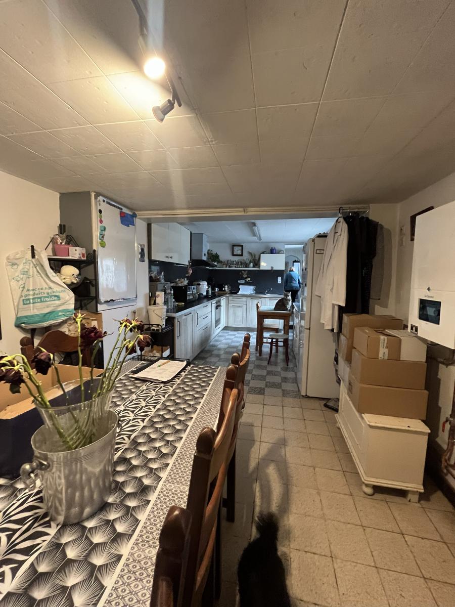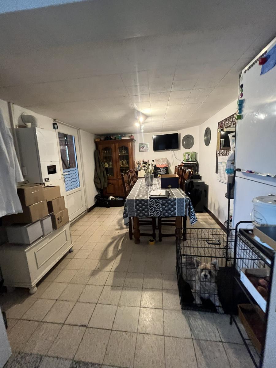 Vous y trouverez au rez-de-chaussée une chambre sur rue, un petit sas d'entrée donnant accès à la cave, au séjour, à un couloir menant à la salle de douche et WC, à la cuisine équipée et à une pièce .