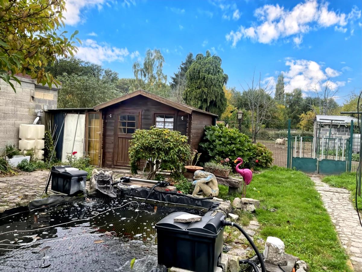 La maison dispose d'un passage sur le côté permettant le stationnement de véhicules, d'un jardin exposé Nord-Ouest, ainsi que diverses dépendances pour du stockage.