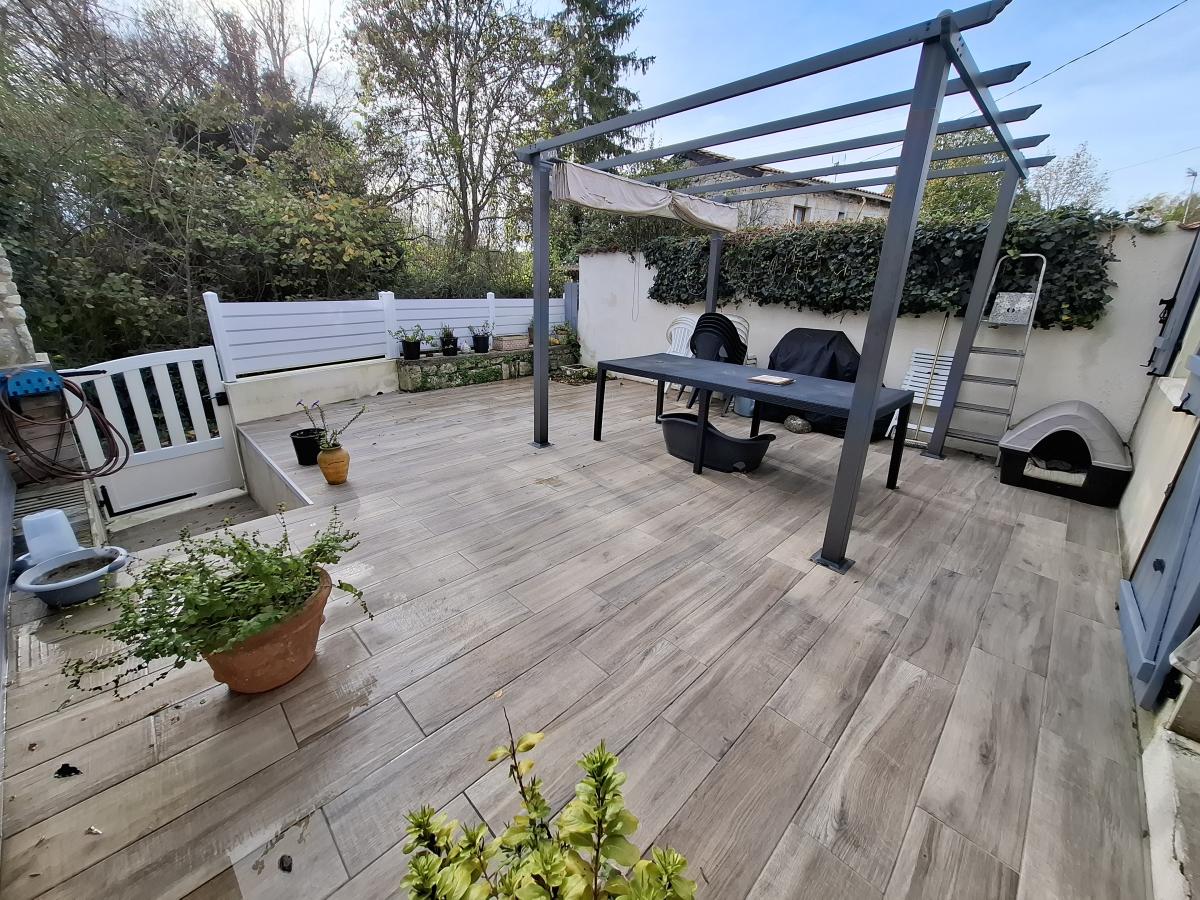 Vous profiterez d'une terrasse carrelée de 26m² ensoleillée avec pergola ainsi que d'une remise et d'un atelier.